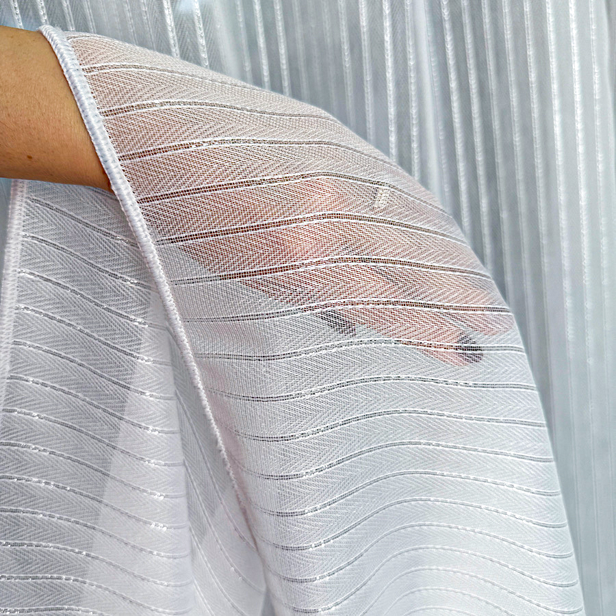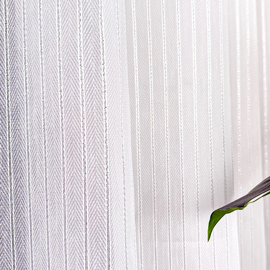 ABBY firanka premium jodełka biała ze srebrnym paskiem wys.295cm
