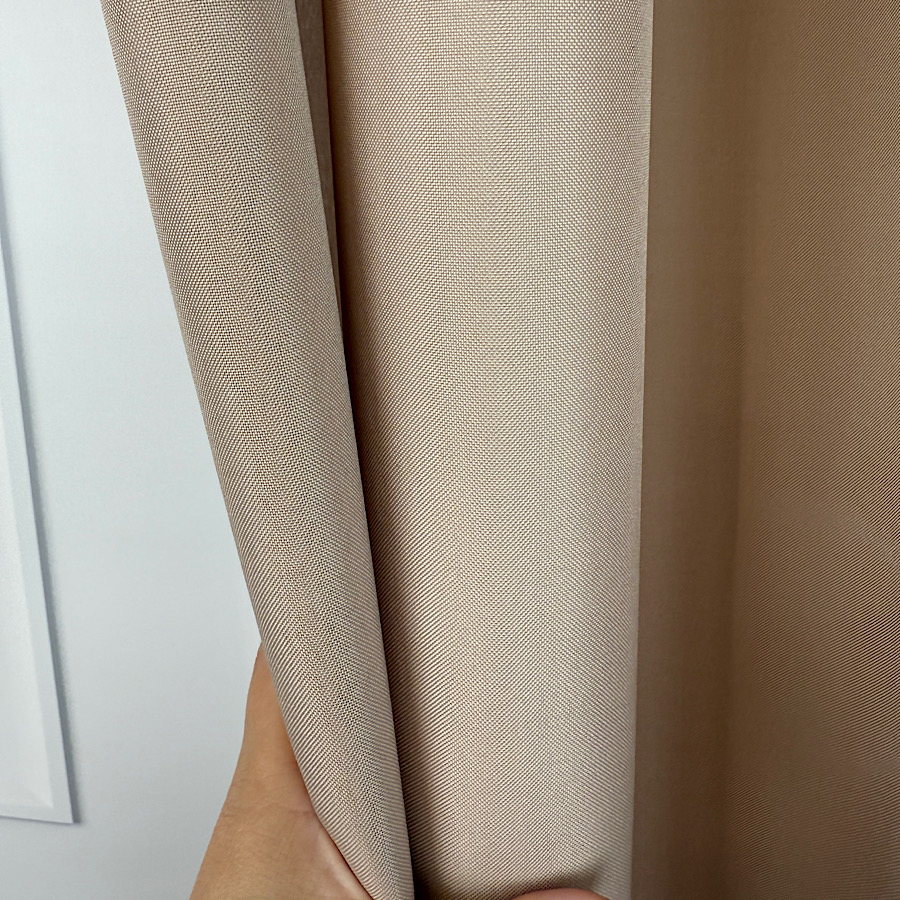 Zaciemniające właściwości – tkanina przepuszcza część światła (ok. 70%), dzięki czemu zasłona chroni prywatność, a jednocześnie nie zaciemnia całkowicie wnętrza.