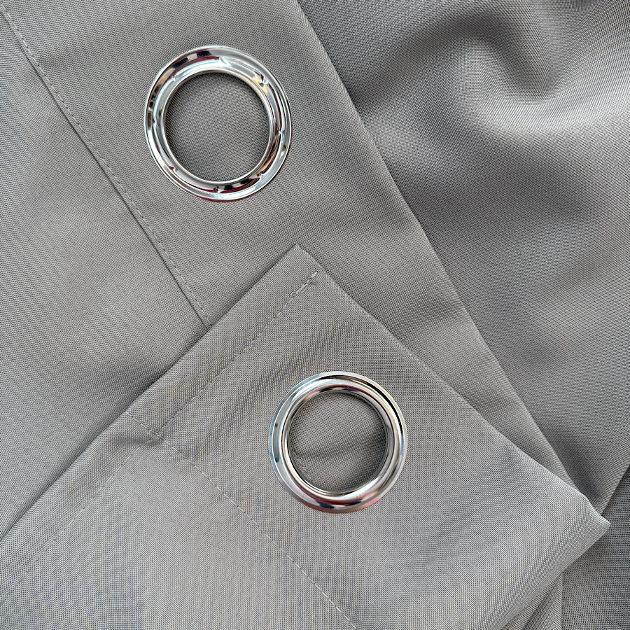 Praktyczne przelotki – srebrne oczka (8 sztuk, średnica 4 cm) umożliwiają szybki montaż na karniszu i sprawiają, że zasłona efektownie się marszczy.