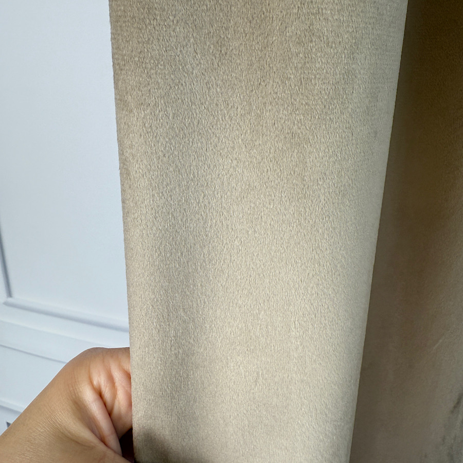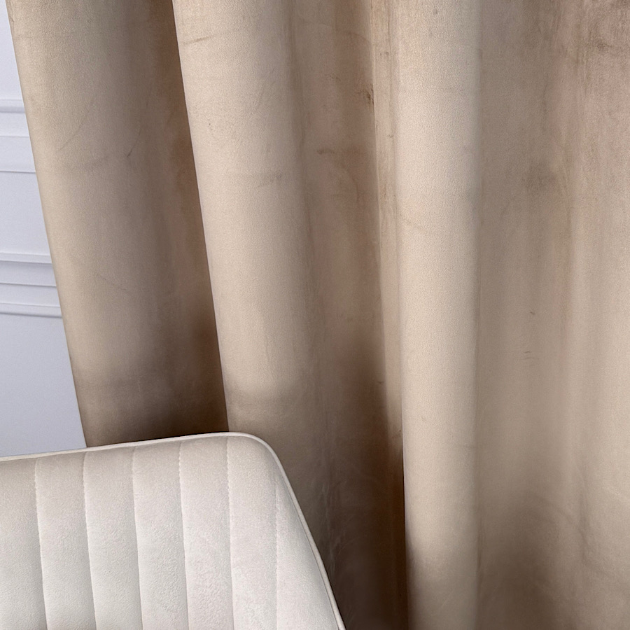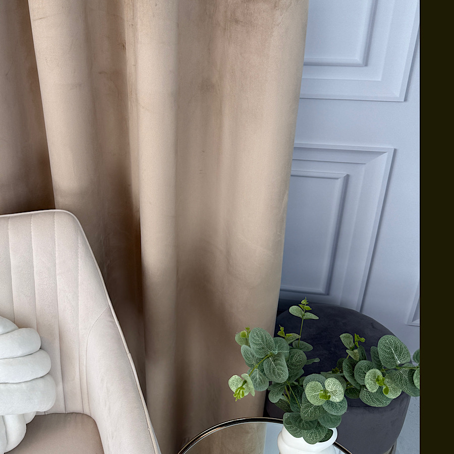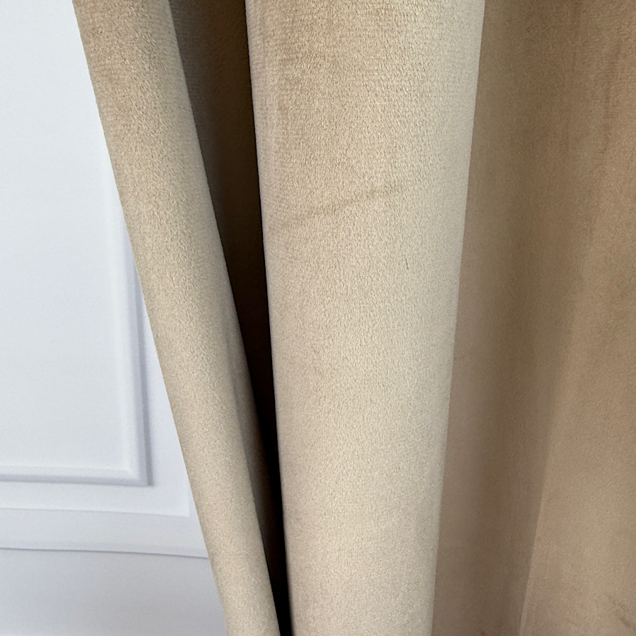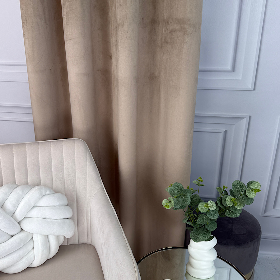 Welurowy materiał – tkanina uszyta jest z bardzo dobrej jakości velvetu z delikatnym włosem, dzięki czemu zasłona chroni prywatność nie wymaga prasowania, a jednocześnie wygląda naprawdę prestiżowo.