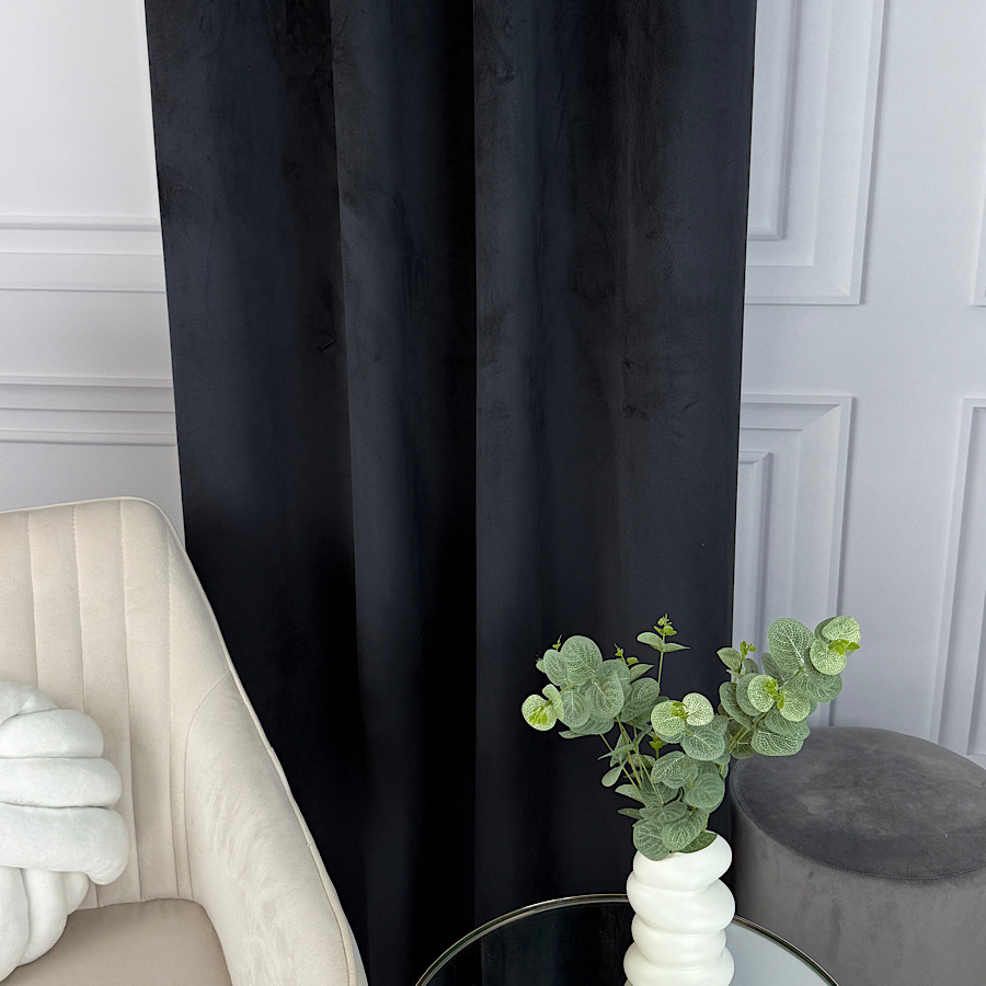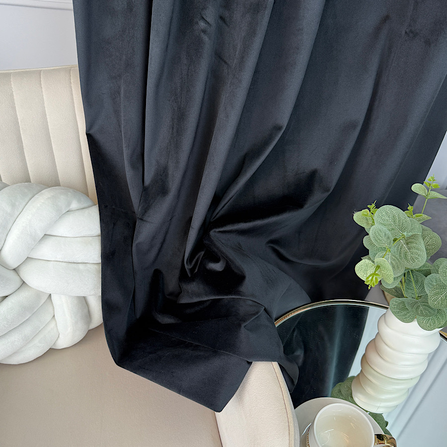 Welurowy materiał – tkanina uszyta jest z bardzo dobrej jakości velvetu z delikatnym włosem, dzięki czemu zasłona chroni prywatność nie wymaga prasowania, a jednocześnie wygląda naprawdę prestiżowo.