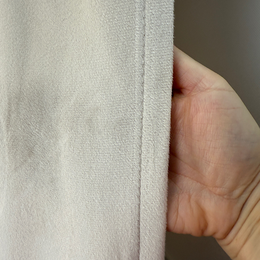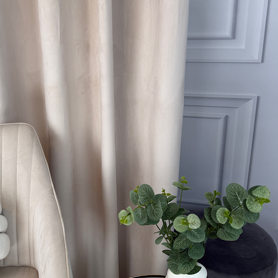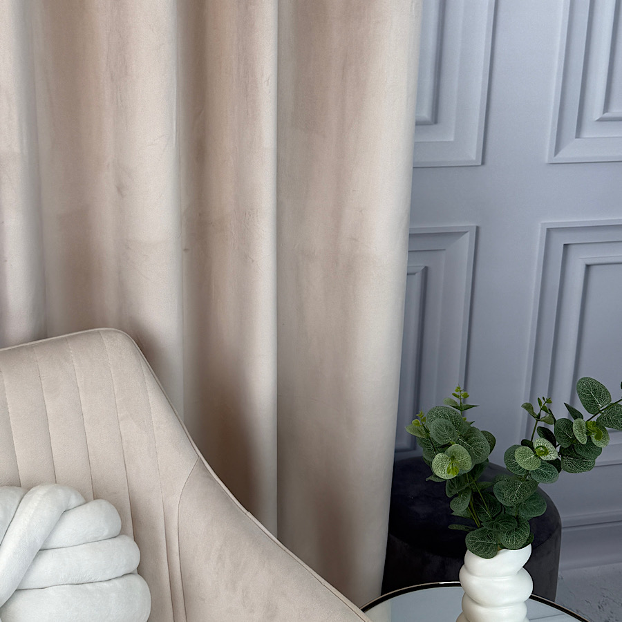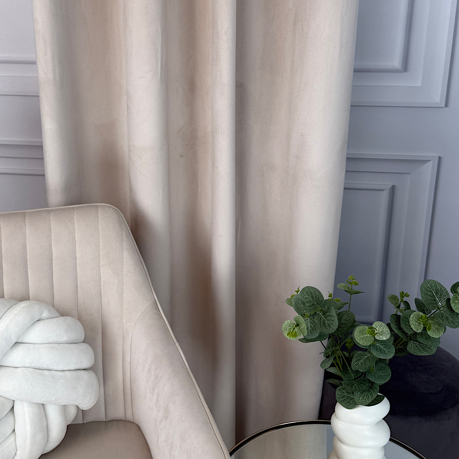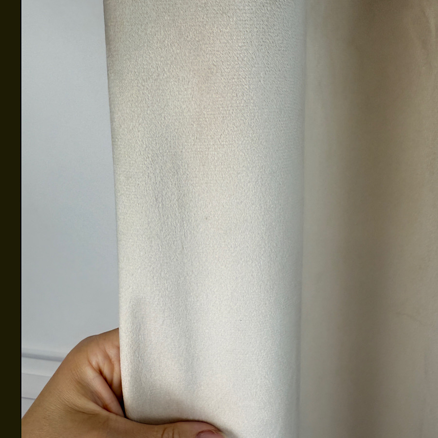 Welurowy materiał – tkanina uszyta jest z bardzo dobrej jakości velvetu z delikatnym włosem, dzięki czemu zasłona chroni prywatność nie wymaga prasowania, a jednocześnie wygląda naprawdę prestiżowo.