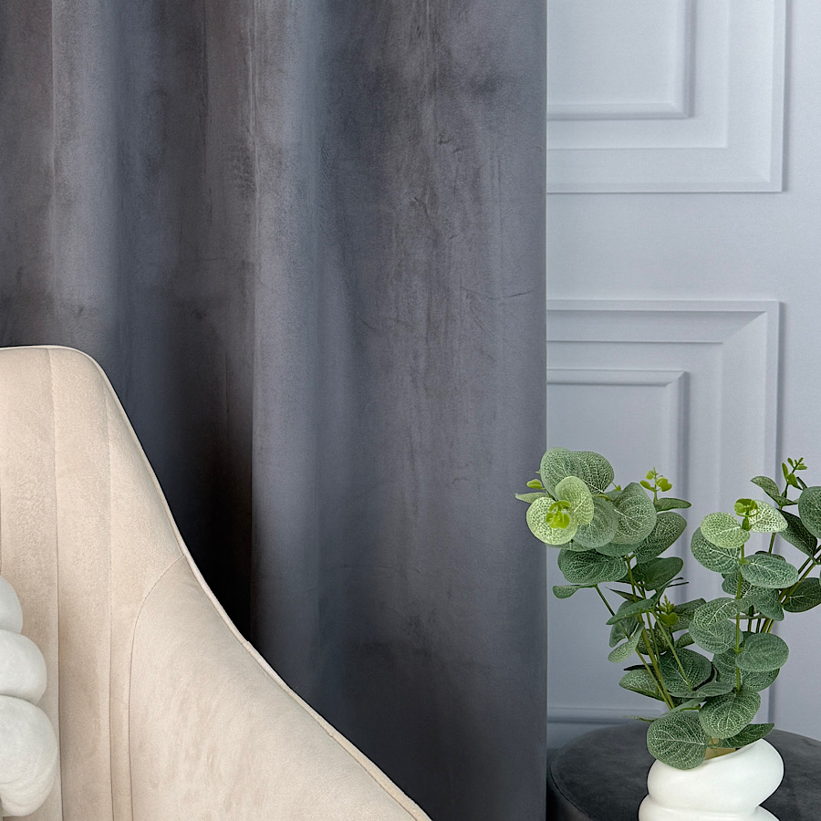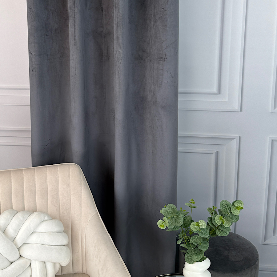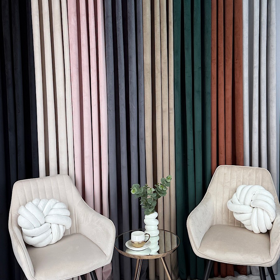 Welurowy materiał – tkanina uszyta jest z bardzo dobrej jakości velvetu z delikatnym włosem, dzięki czemu zasłona chroni prywatność nie wymaga prasowania, a jednocześnie wygląda naprawdę prestiżowo.