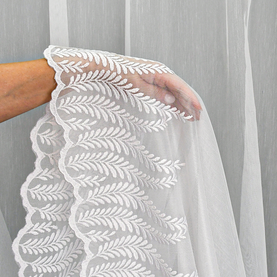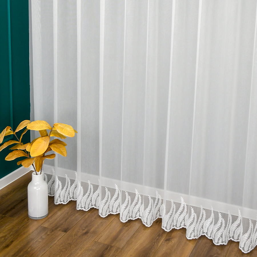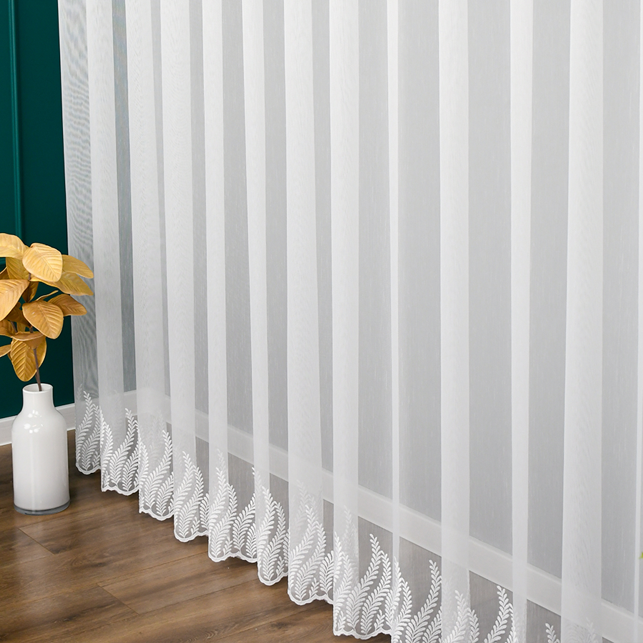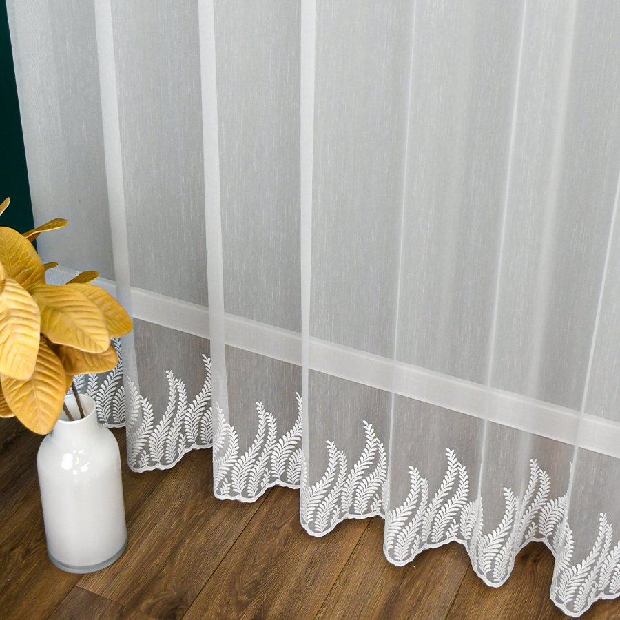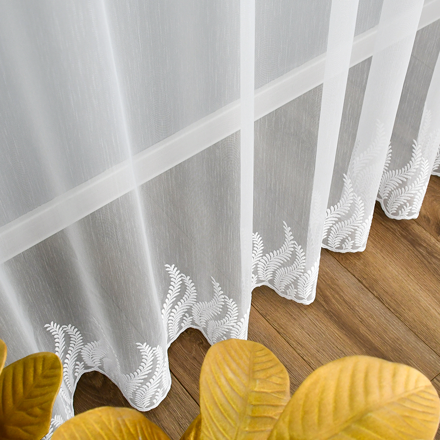 Firana fabrycznie wykończona delikatnym dolnym haftem