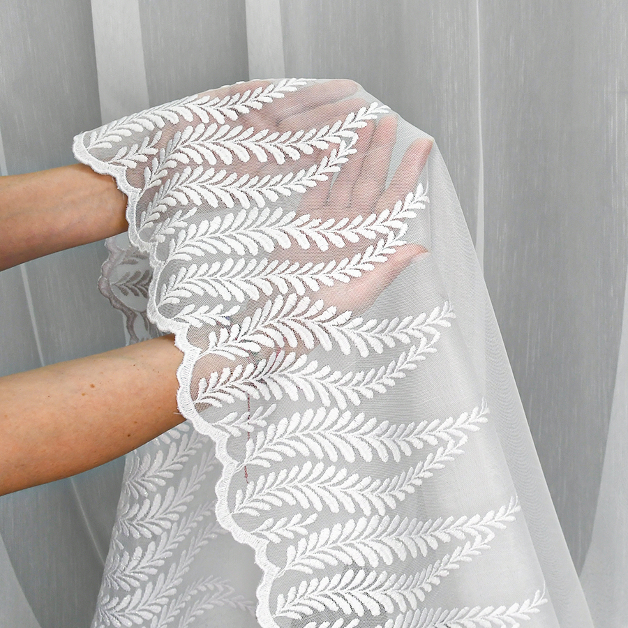 Odkryj niezwykłą firanę Almę – delikatną strukturalną matową firankę z opalizującym modnym minimalistycznym haftem, która podkreśli wyjątkowy charakter Twojego wnętrza. Alma to nie tylko zwykła firana, to połączenie strukturalnej siateczki z najmodniejszym motywem delikatnych kwiatuszków samym dołem, nadającym jej niezwykłego blasku. Delikatnym haft dołem dodaje elegancji i sprawia, że ta firana to niezaprzeczalna ozdoba każdego pomieszczenia.