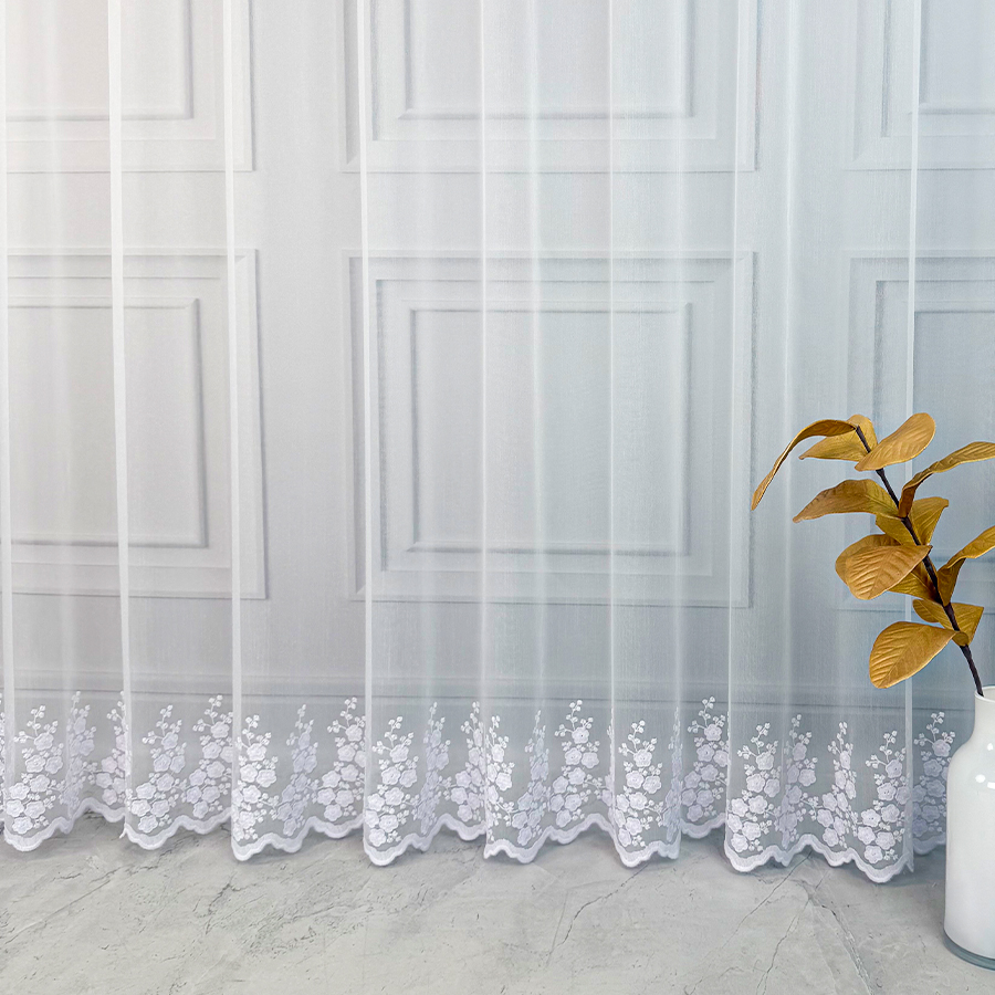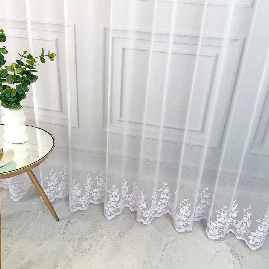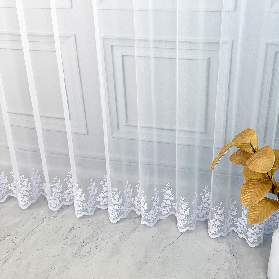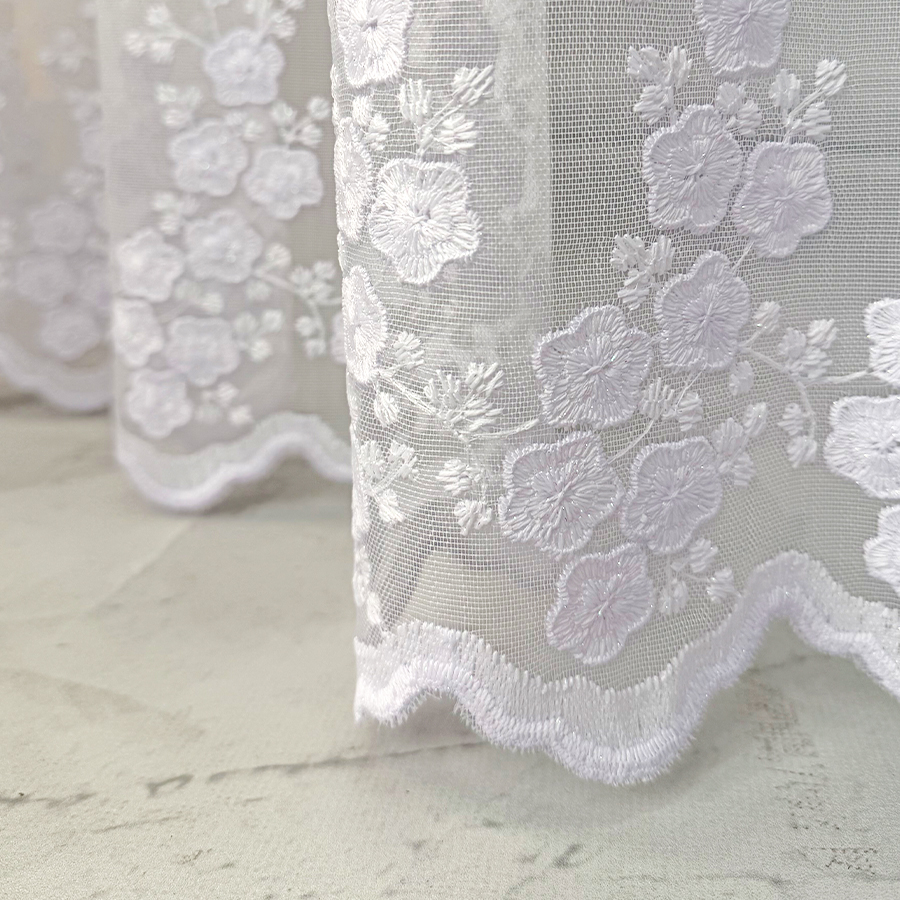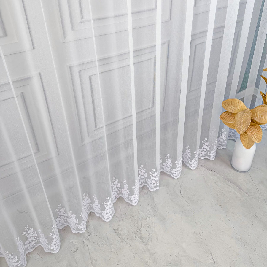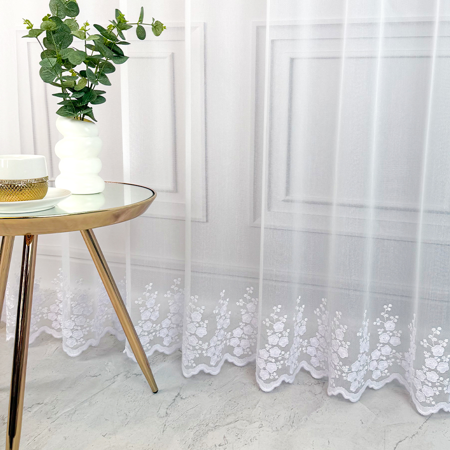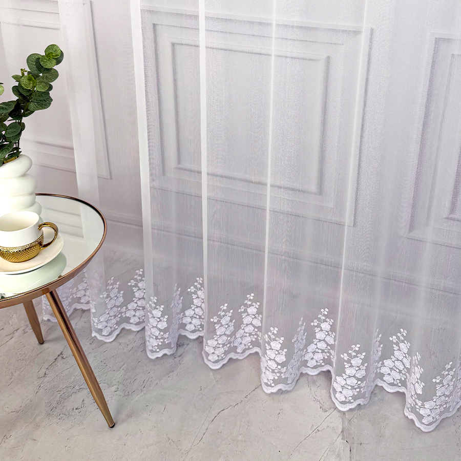 Odkryj niezwykłą firanę Anastazję – delikatną strukturalną matową firankę z opalizującym modnym minimalistycznym haftem, która podkreśli wyjątkowy charakter Twojego wnętrza. Anastazja to nie tylko zwykła firana, to połączenie strukturalnej siateczki z najmodniejszym motywem delikatnych kwiatuszków samym dołem, nadającym jej niezwykłego blasku. Delikatnym haft dołem dodaje elegancji a także sprawia, że ta firana to niezaprzeczalna ozdoba każdego pomieszczenia.