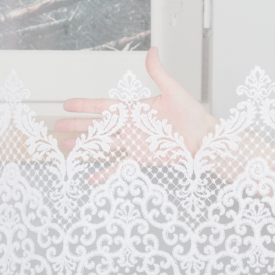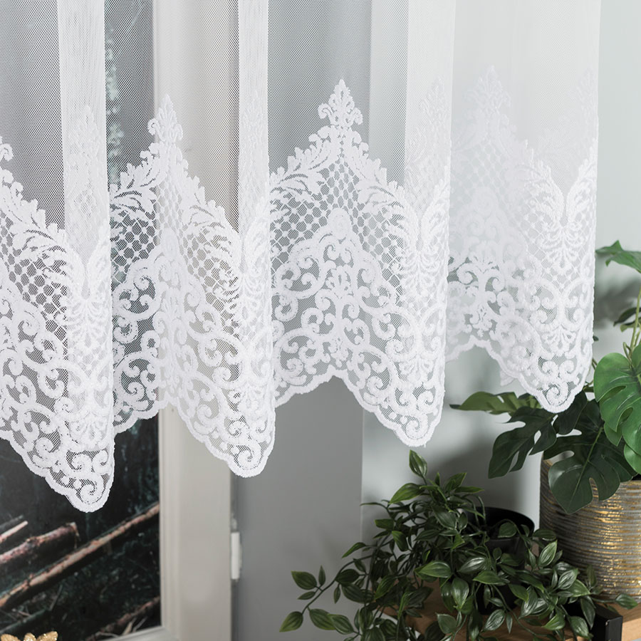 Arleta firana haftowana na podkładzie siateczka strukturalna, która podpija serca najbardziej wymagających klientów. Delikatny podkład, który przepuszcza dużo światła a jednocześnie zapewnia prywatność w domu. Wysokogatunkowa przędza sprawia, że firana nie jest podatna na szybkie zmiany kolorów, dzięki czemu będziesz mógł się cieszyć piękną dekoracją okienną przez długie lata.