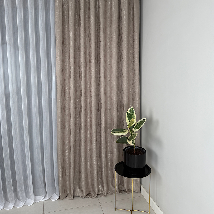 - Przyjemna w dotyku tkanina – miękka struktura sprawia, że zasłona wygląda elegancko i układa się naturalnie, tworząc efekt delikatnej falistości.