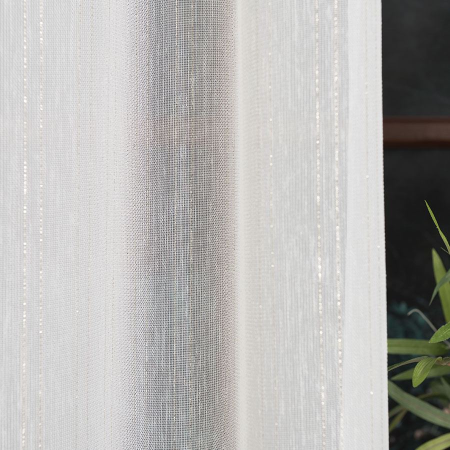 Nasza firana fantazyjna to idealna propozycja dla osób, które poszukują klasycznego rozwiązania z nutą nowoczesnego blasku. Subtelna, błyszcząca nitka sprawia, że firanka prezentuje się wyjątkowo efektownie zarówno w dziennym, jak i sztucznym świetle.