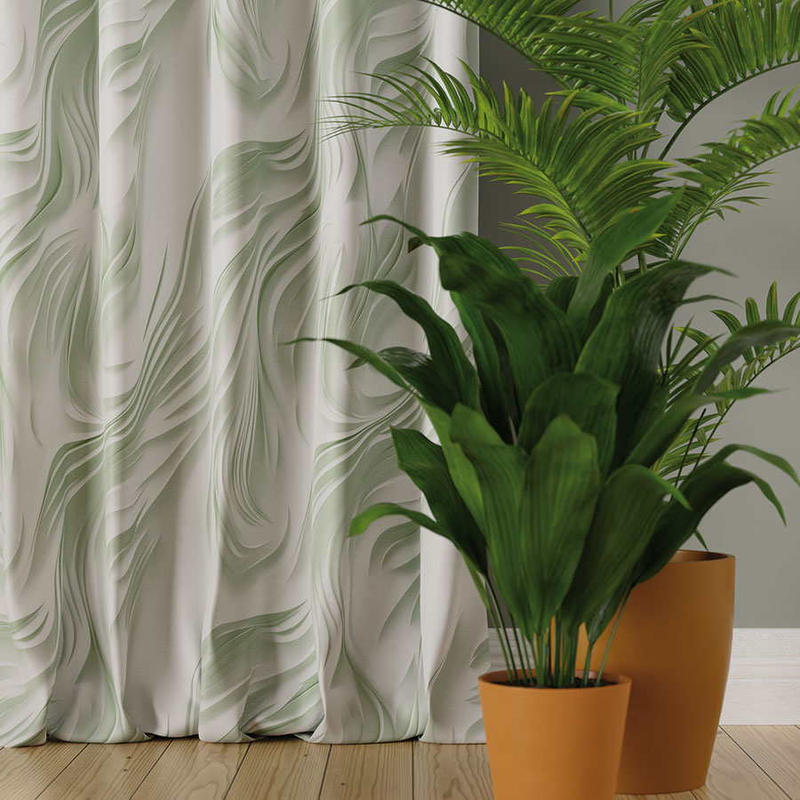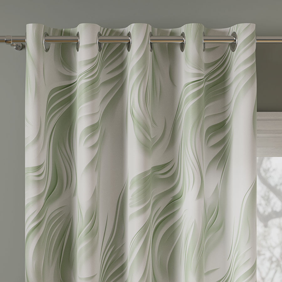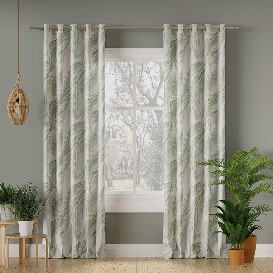 - tkanina na podkładzie nina– gładka struktura sprawia, że zasłona wygląda elegancko i układa się naturalnie, tworząc efekt delikatnej falistości.