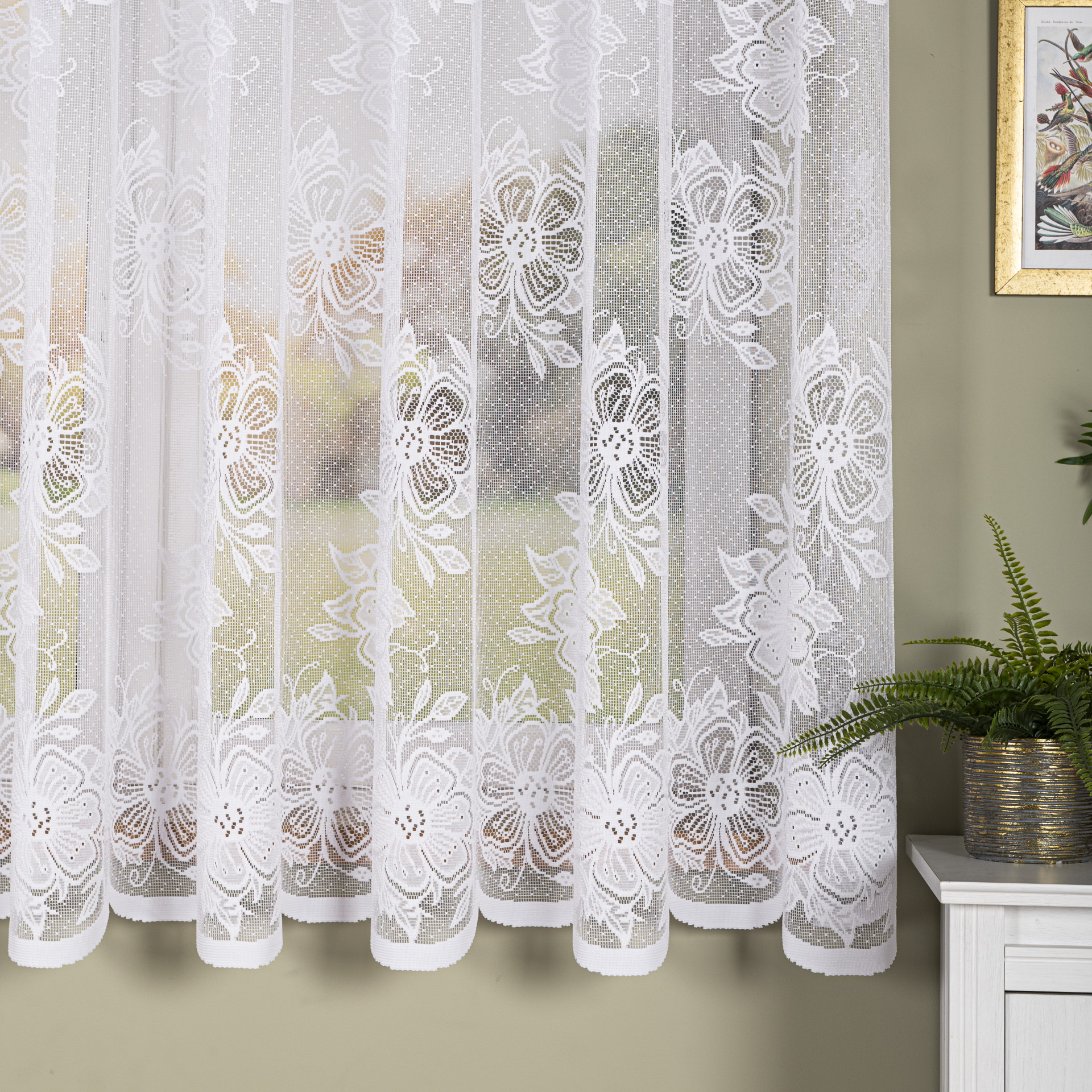 Podsumowując, stylowy żakard to nie tylko element dekoracyjny, to wyraz klasy i elegancji ponadto jej piękny wzór oraz dostępność w formie metrażowej i możliwość zamówienia na wymiar sprawiają, że to idealny wybór dla tych, którzy pragną wyjątkowej firany dopasowanej do swoich potrzeb. Pozwól Firanie Carmen dodać piękna i wyjątkowości Twojemu wnętrzu. Wykonana z wysokiej jakości żakardu, co więcej cechuje się subtelnym połyskiem i trwałością.
