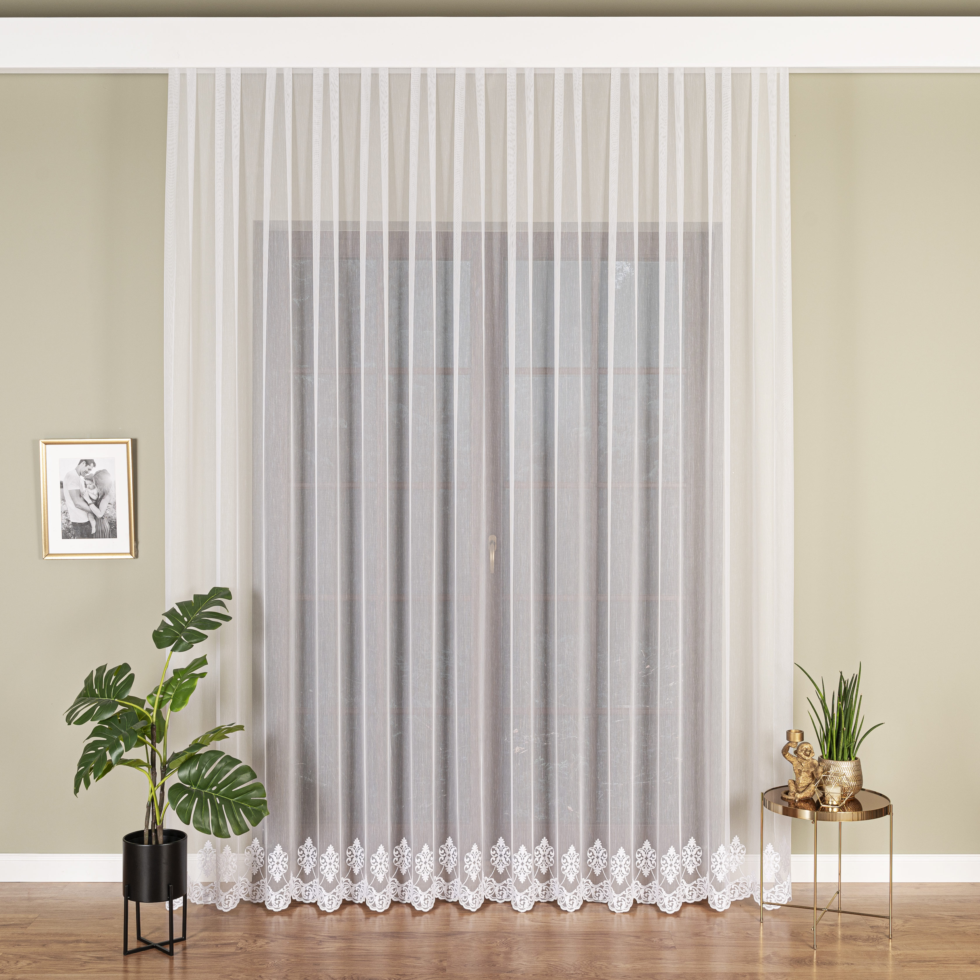 Firana prezentuje się najlepiej marszczona w zakresie 1:2 (szerokość karnisza x2 -podwójne marszczenie)