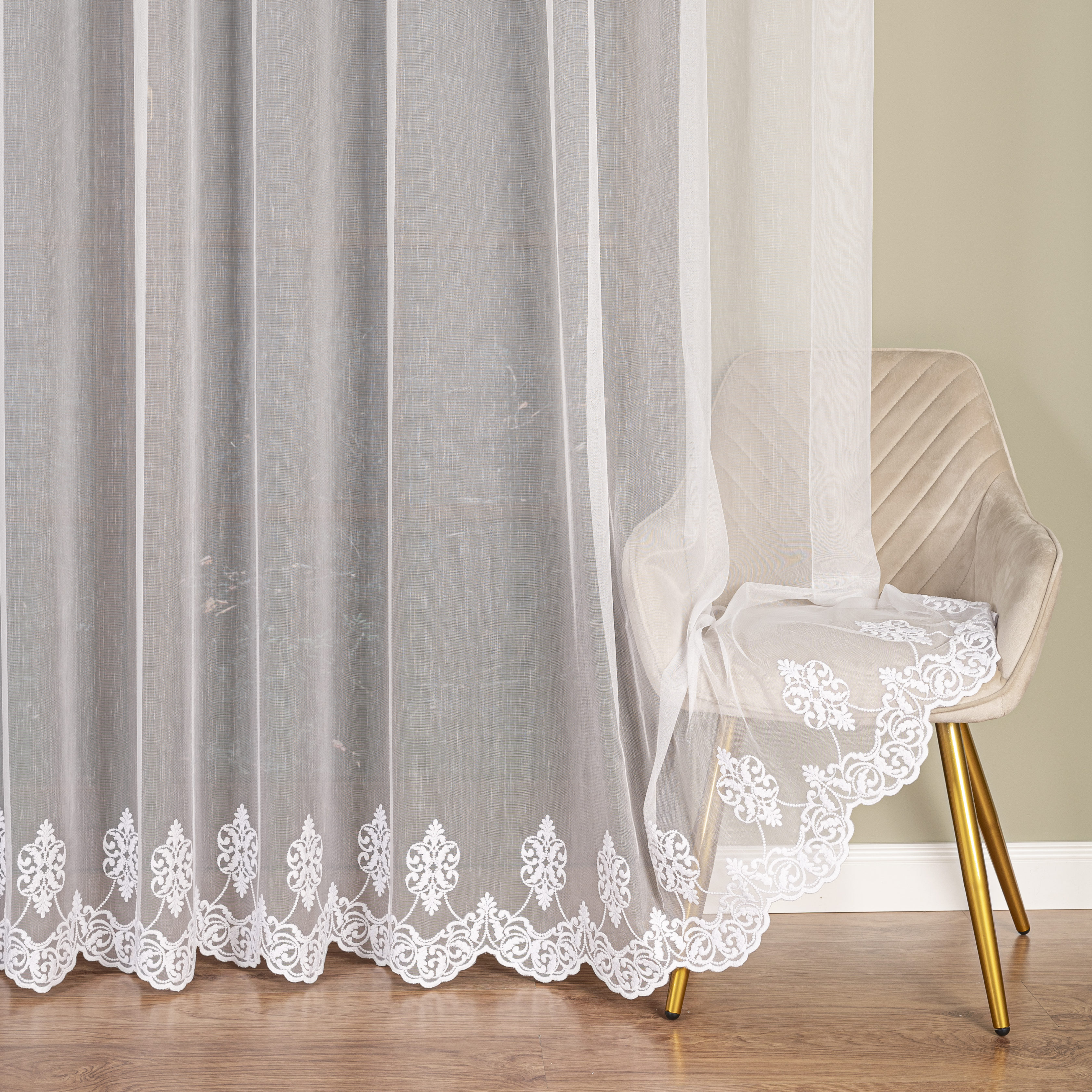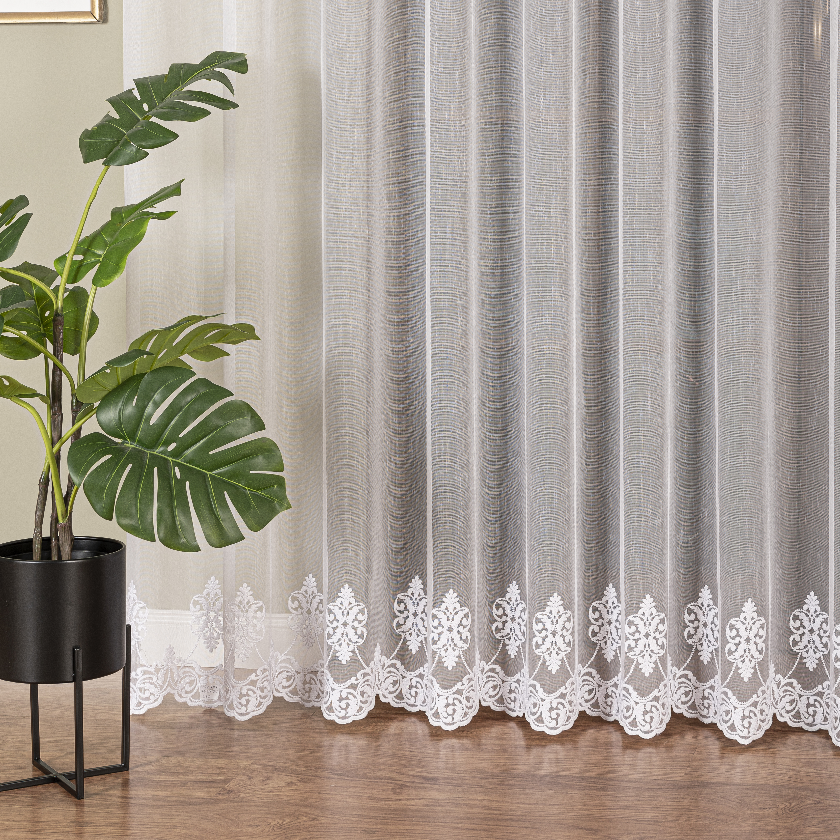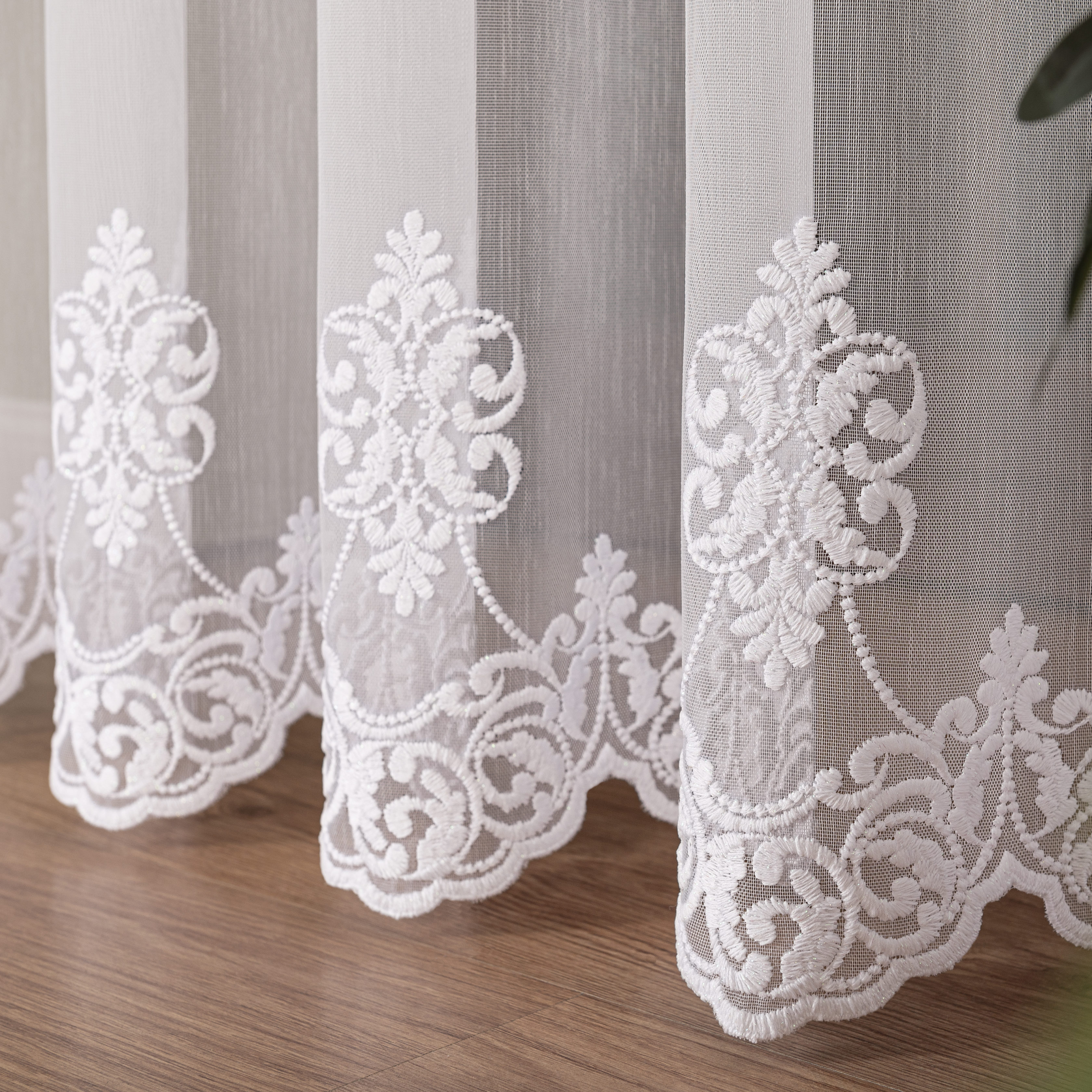 Dafne firana haftowana na podkładzie markizeta strukturalna, która podpija serca najbardziej wymagających klientów. Delikatny podkład, który przepuszcza dużo światła a jednocześnie zapewnia prywatność w domu. Wysokogatunkowa przędza sprawia, że firana nie jest podatna na szybkie zmiany kolorów, dzięki czemu będziesz mógł się cieszyć piękną dekoracją okienną przez długie lata.