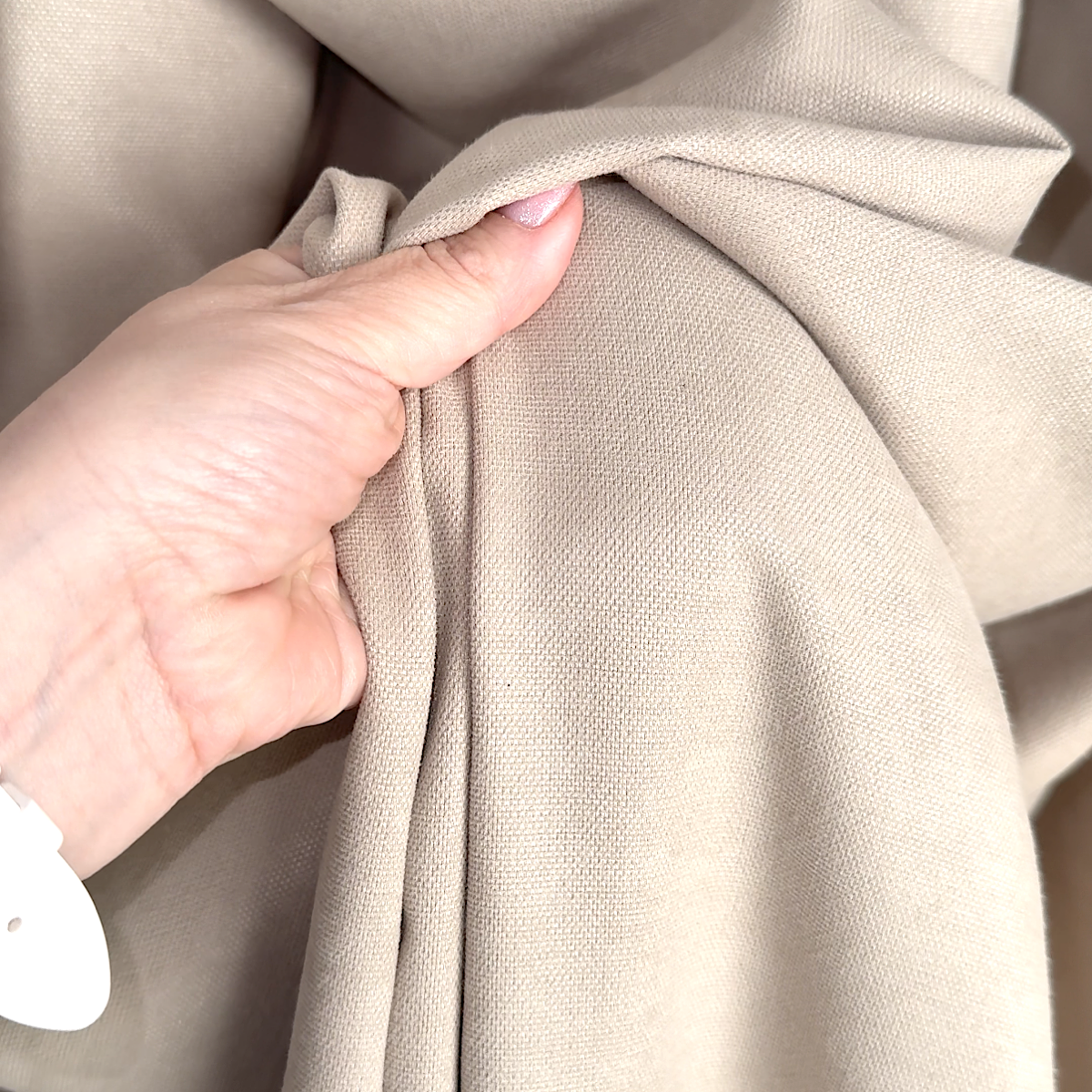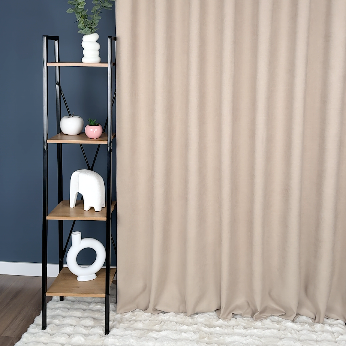 - Przyjemna w dotyku tkanina – miękka struktura sprawia, że zasłona wygląda elegancko i układa się naturalnie, tworząc efekt delikatnej falistości.