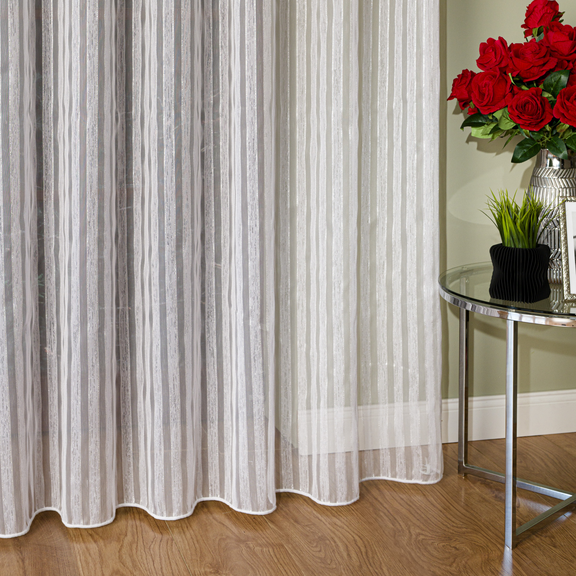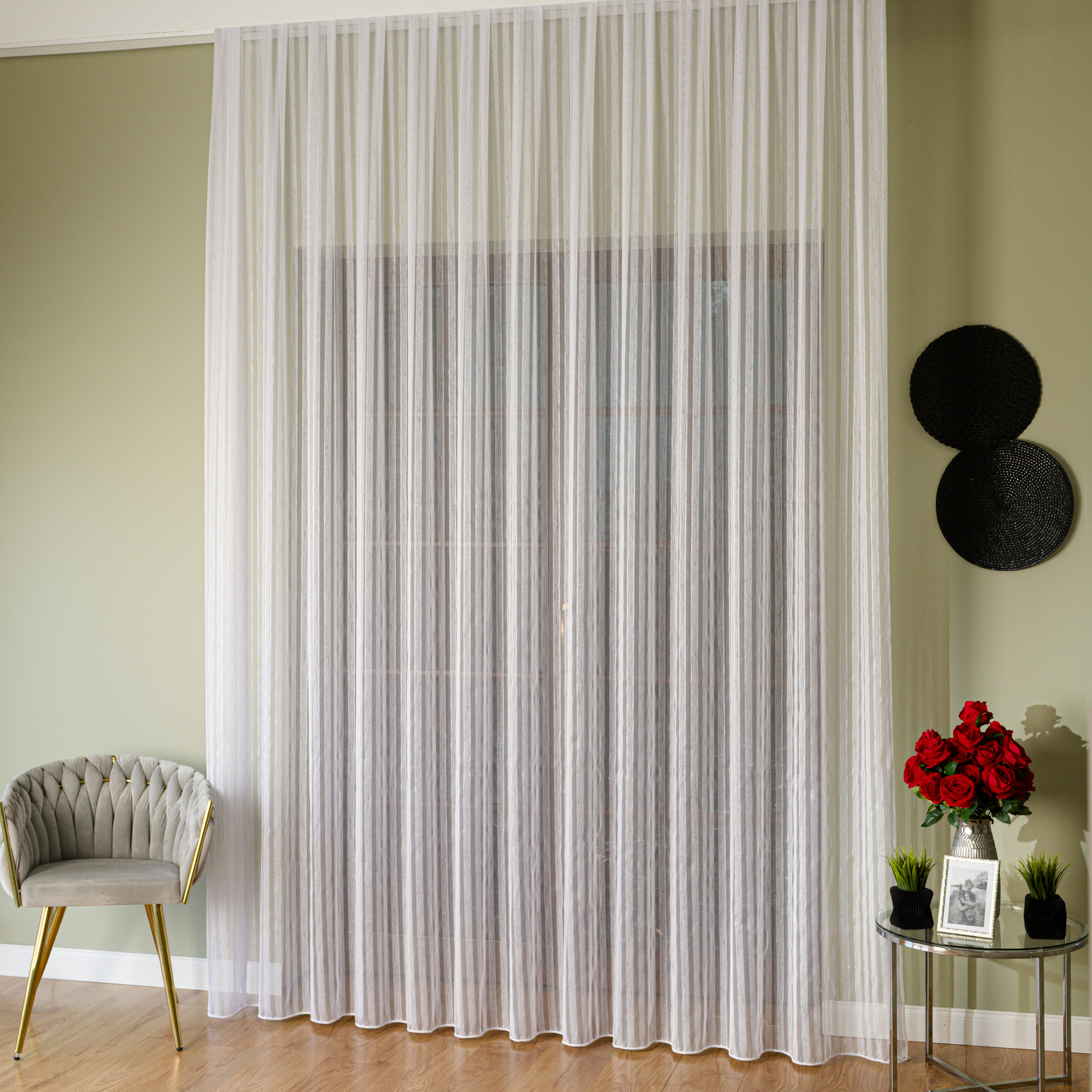 Nasza firana fantazyjna to idealna propozycja dla osób, które poszukują klasycznego rozwiązania z nutą nowoczesnego blasku. Subtelna, błyszcząca nitka sprawia, że firanka prezentuje się wyjątkowo efektownie zarówno w dziennym, jak i sztucznym świetle.