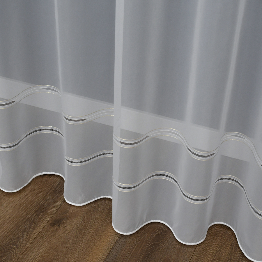 • Wzór: dwa ozdobne pasy ze złotą aplikacją (dół firany)