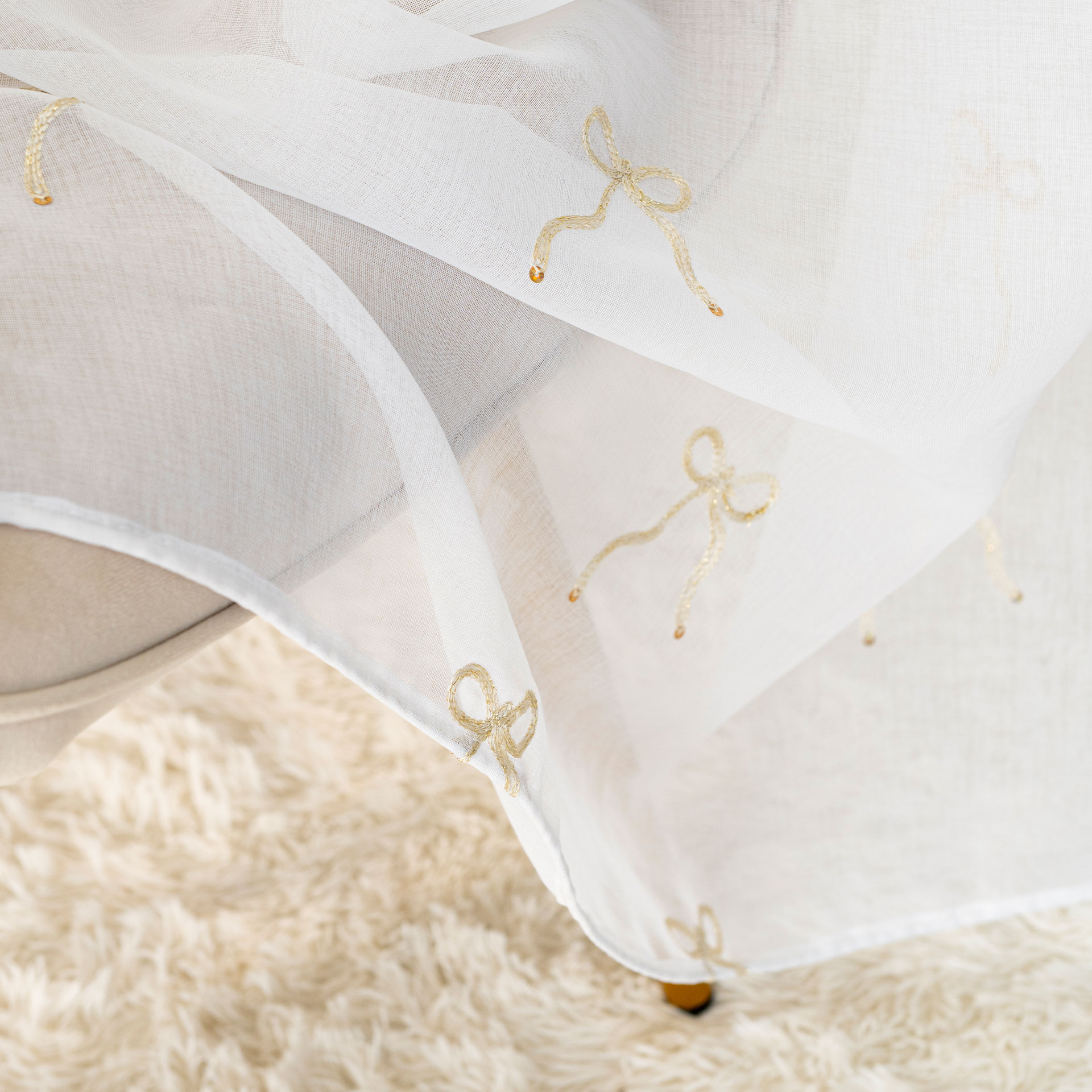 Firana gotowa z haftowanymi złotymi kokardkami szer.140xwys.250cm, kolor 002