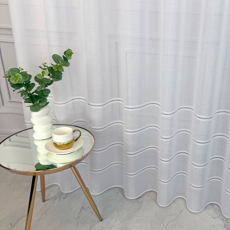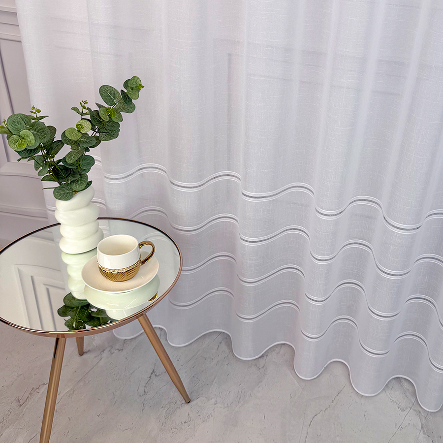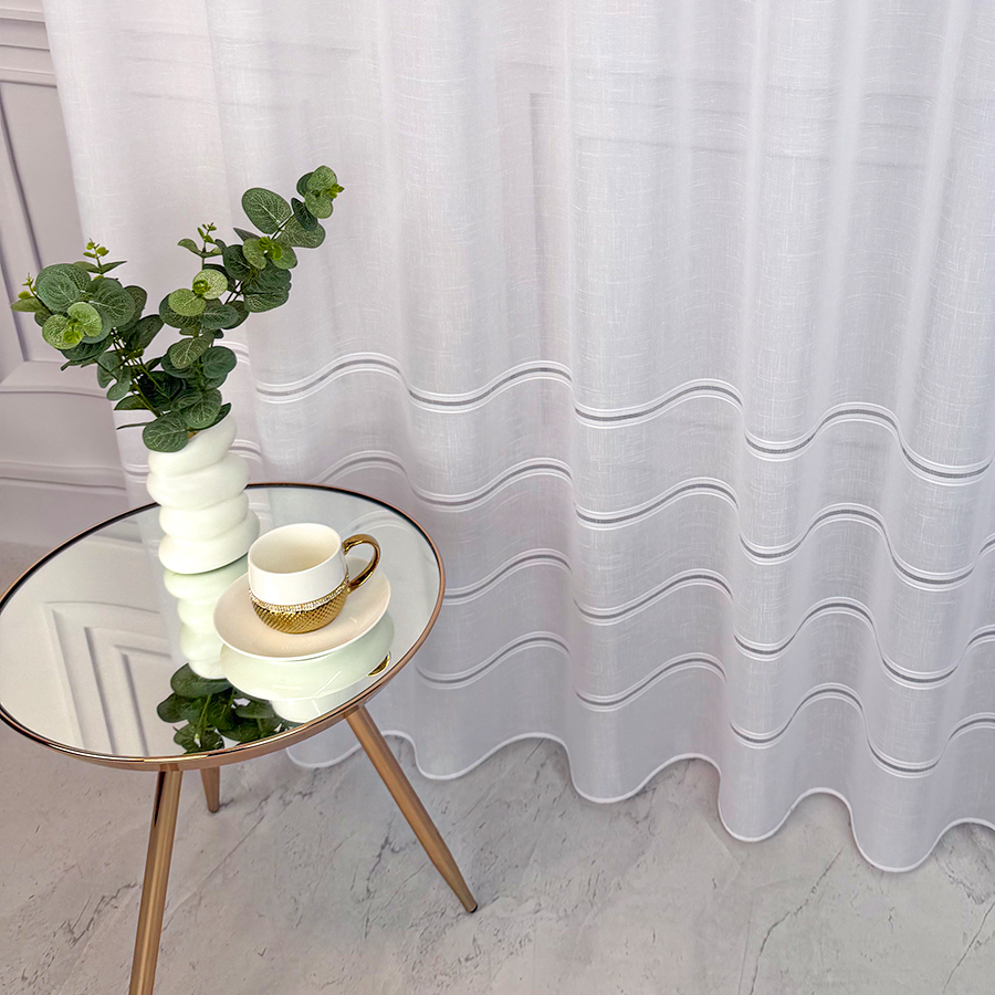Firana z delikatnego batystu to dekoracja uniwersalna, która świetnie sprawdzi się w różnych wnętrzach- od nowoczesnych i minimalistycznych, po skandynawskie, klasyczne, glamour czy boho. Jej gładka, delikatna struktura nie dominuje we wnętrzu, zatem idealnie współgra z innymi elementami aranżacji. Może być zawieszona samodzielnie lub stanowić subtelne tło dla dekoracyjnych zasłon czy lambrekinów.