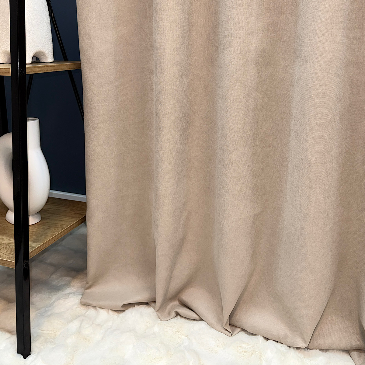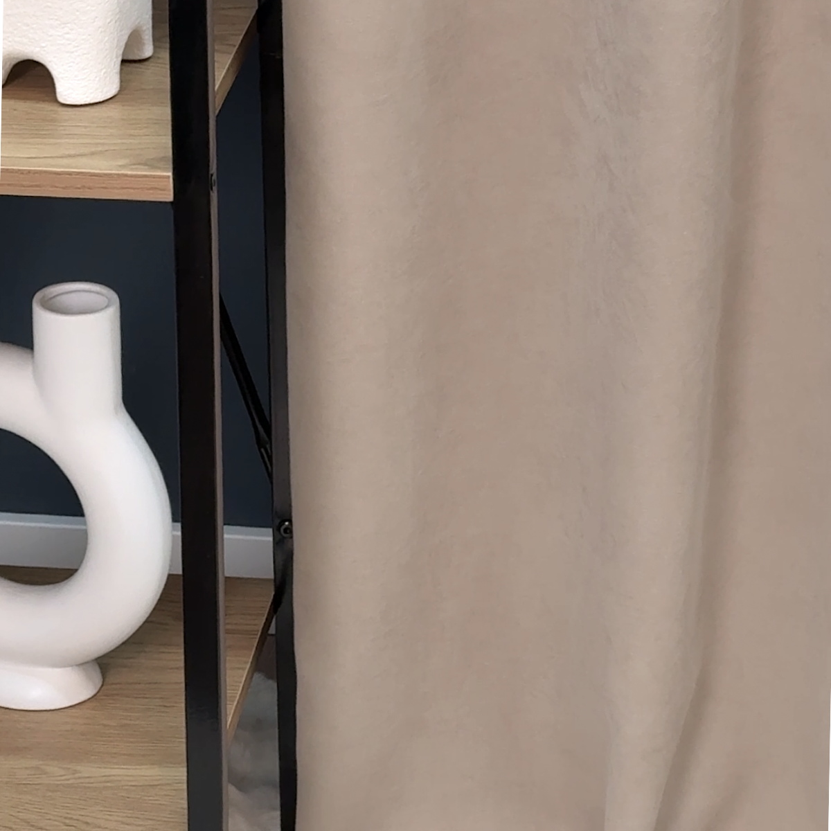 - Przyjemna w dotyku tkanina – miękka struktura sprawia, że zasłona wygląda elegancko i układa się naturalnie, tworząc efekt delikatnej falistości.
