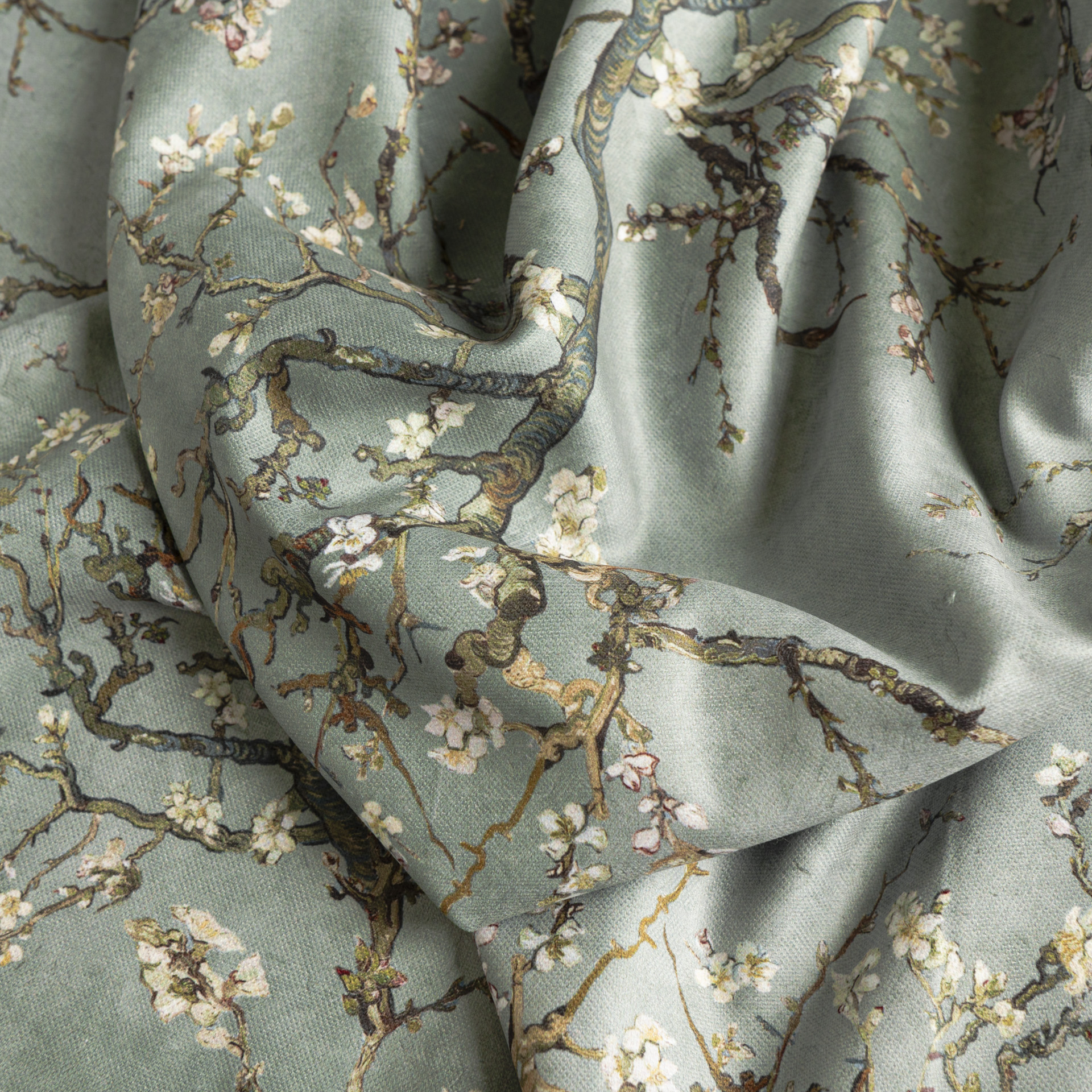 kwitnący migdałowiec Tkanina dekoracyjna szer.150cm kolor szałwiowy NA PODKŁADZIE efe