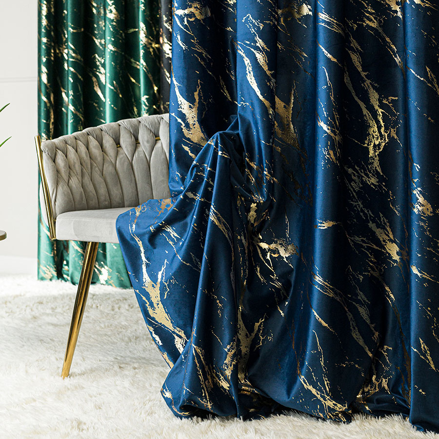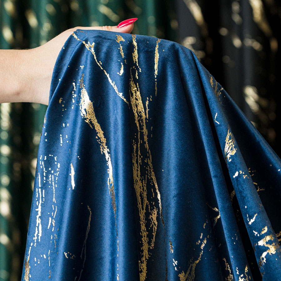 Marmurek – tkanina zasłonowa velvet wys.300 cm granat ze złotem
