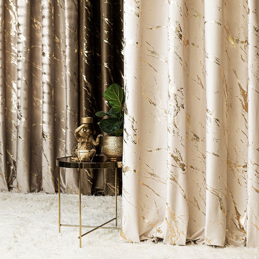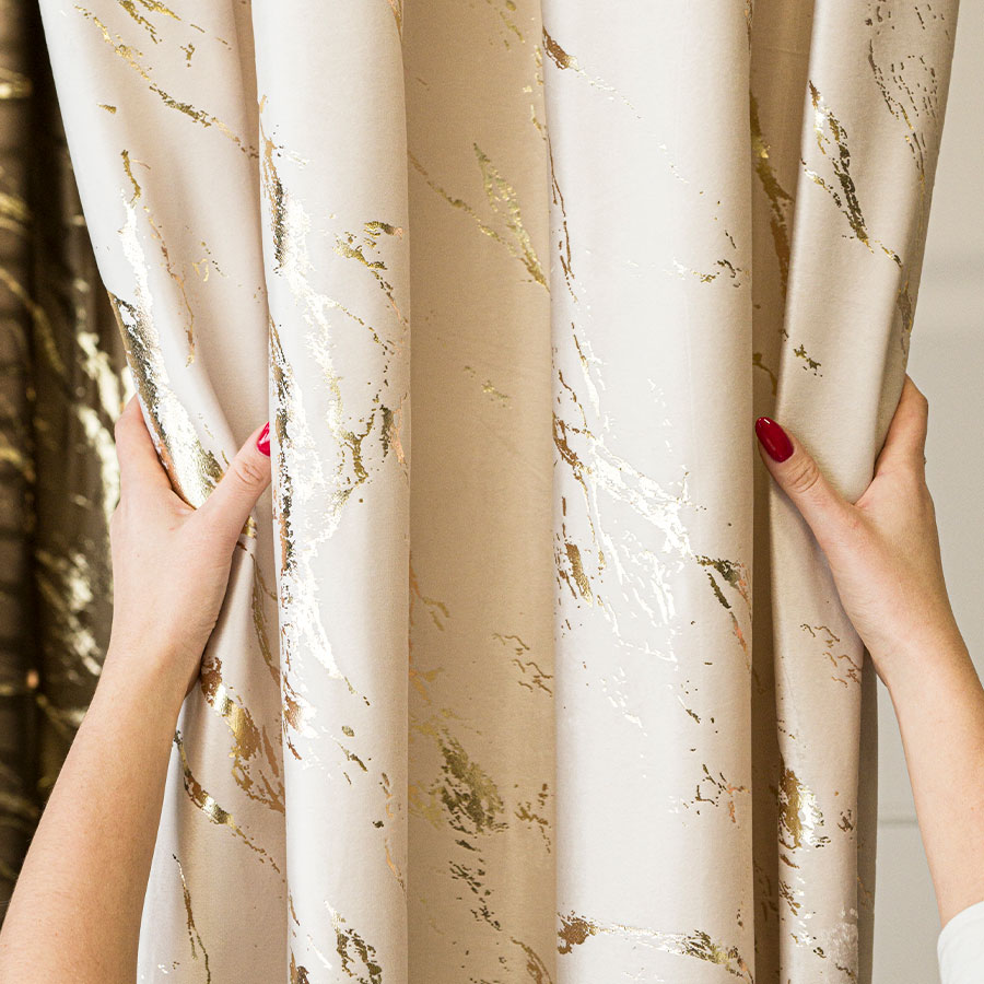 Zasłona MARMUREK to kwintesencja nowoczesnego luksusu i wyrafinowanego stylu. Inspirowana naturalnym rysunkiem marmuru, łączy w sobie subtelne odcienie beżu z delikatnym, połyskującym nadrukiem przypominającym żyłki kamienia. Ten dekoracyjny efekt daje wyjątkowe wrażenie głębi a także tekstury, przyciągając wzrok, a jednocześnie wprowadzając do wnętrza spokój i harmonię.