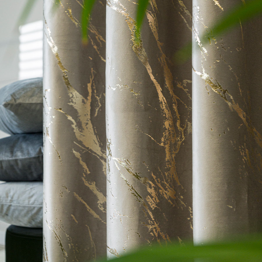 Marmurek – tkanina zasłonowa velvet wys.300 cm szarobeżowy ze złotem