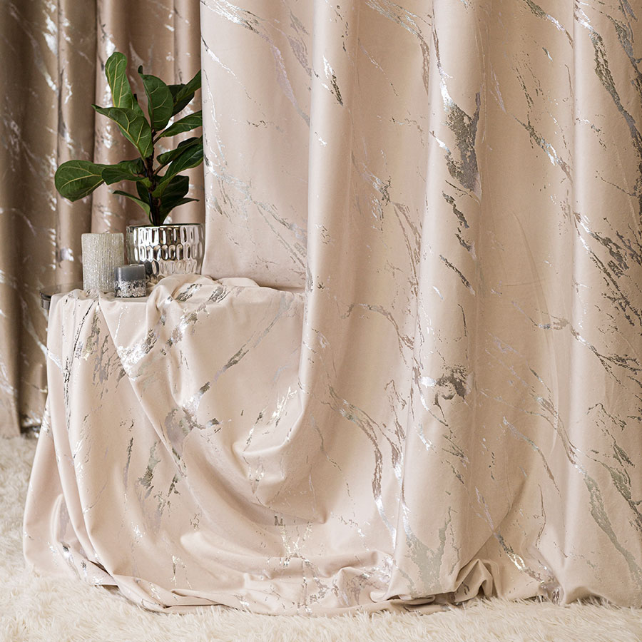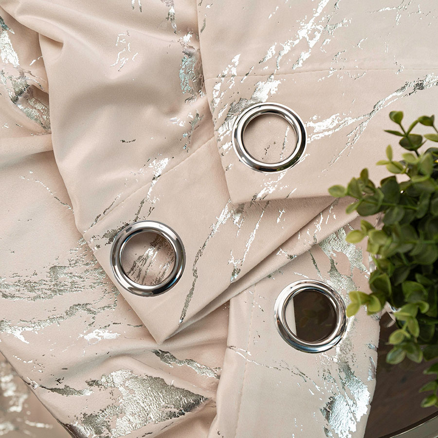 Gotowa zasłona marmurek to idealny wybór dla wszystkich fanów VELVETÓW! Charakteryzuje się wysoką gramaturą, elegancko odbija światło oraz świetnie podkreśla charakter różnorodnych wnętrz. Jej niesamowicie urokliwy i luksusowy wygląd to zasługa srebrnych zdobień imitujących wzór marmuru.