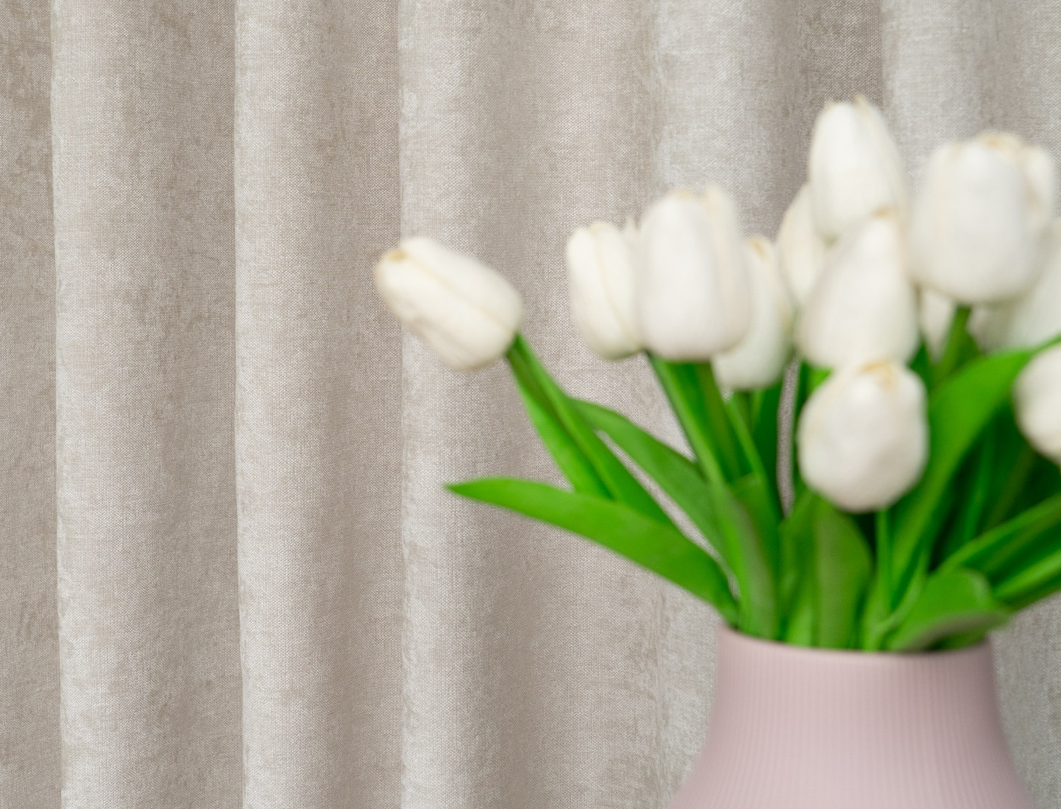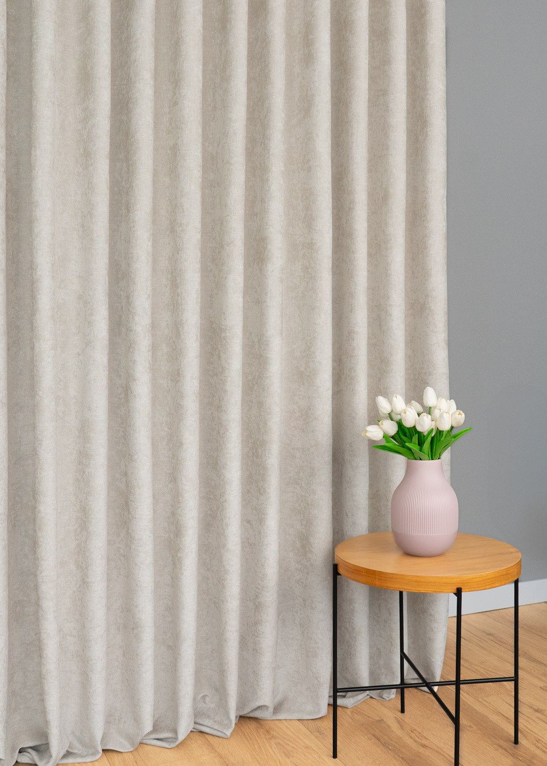• Przyjemna w dotyku tkanina – miękka struktura sprawia, że zasłona wygląda elegancko i układa się naturalnie, tworząc efekt delikatnej falistości.