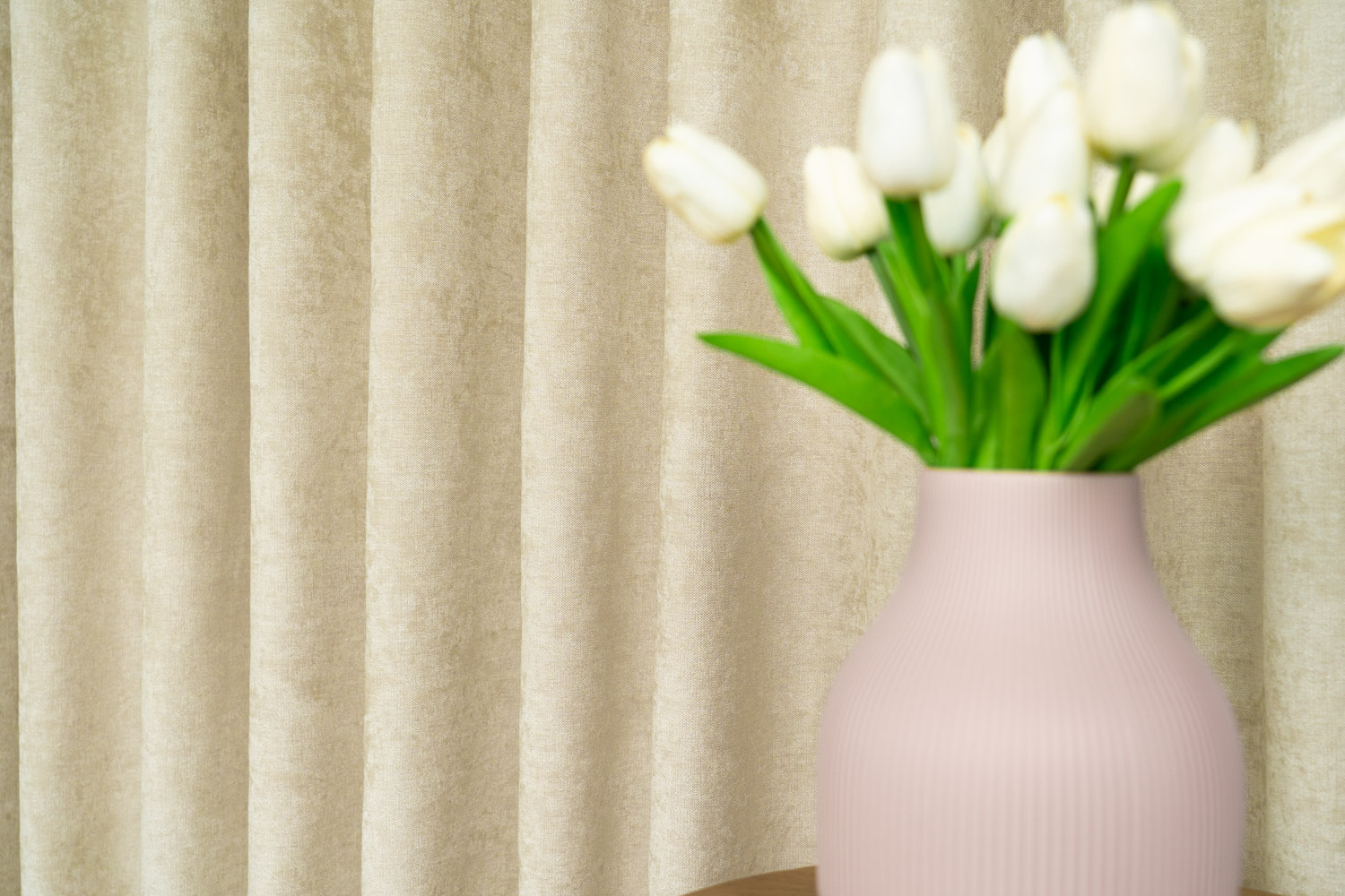 - Przyjemna w dotyku tkanina – miękka struktura sprawia, że zasłona wygląda elegancko i układa się naturalnie, tworząc efekt delikatnej falistości.