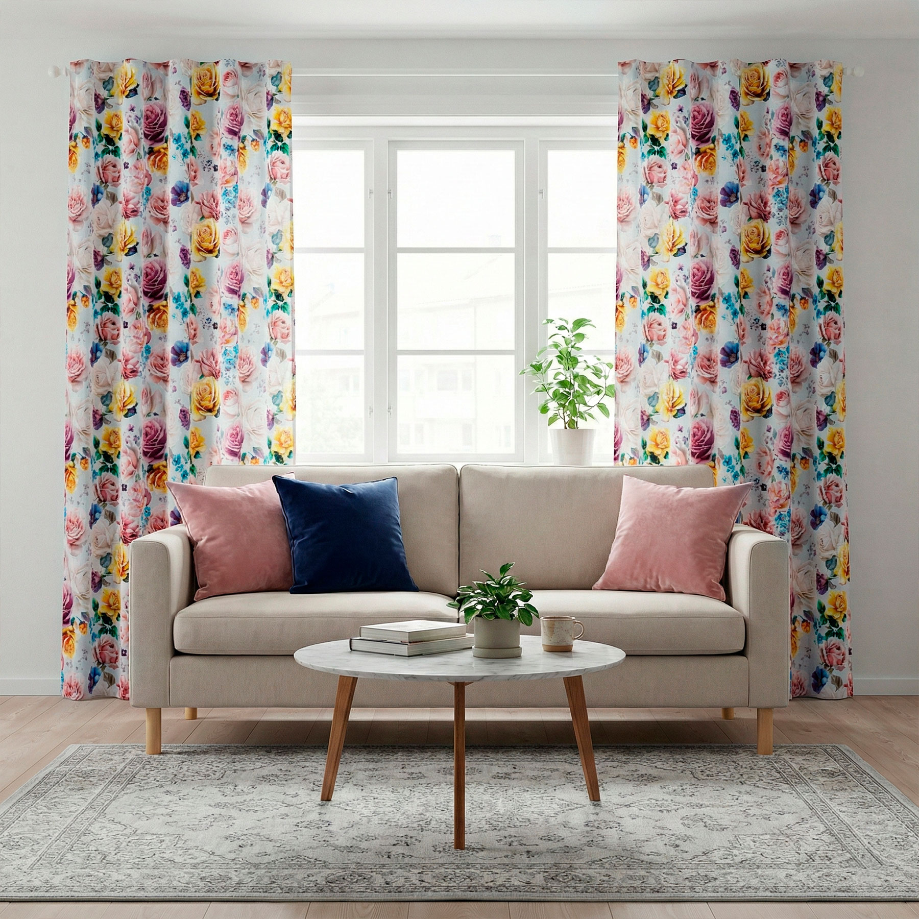 Zasłona dekoracyjna rosetta to wyjątkowa propozycja dla osób, które poszukują połączenia ponadczasowej elegancji z naturalną, kwiatową świeżością. Dzięki bogatemu, florystycznemu wzorowi, przedstawiającemu subtelnie rozkwitające kwiaty w ciepłych odcieniach  różu, kremu oraz żółtego, materiał nie tylko przyciąga wzrok, ale również tworzy atmosferę przytulności i romantycznego uroku.