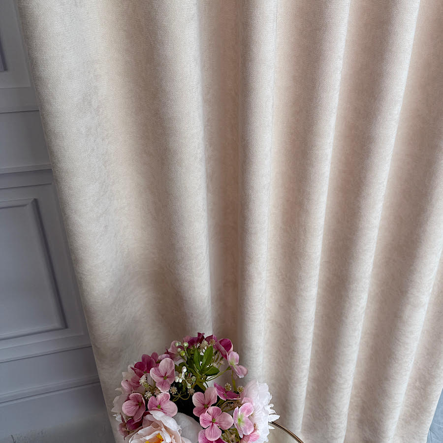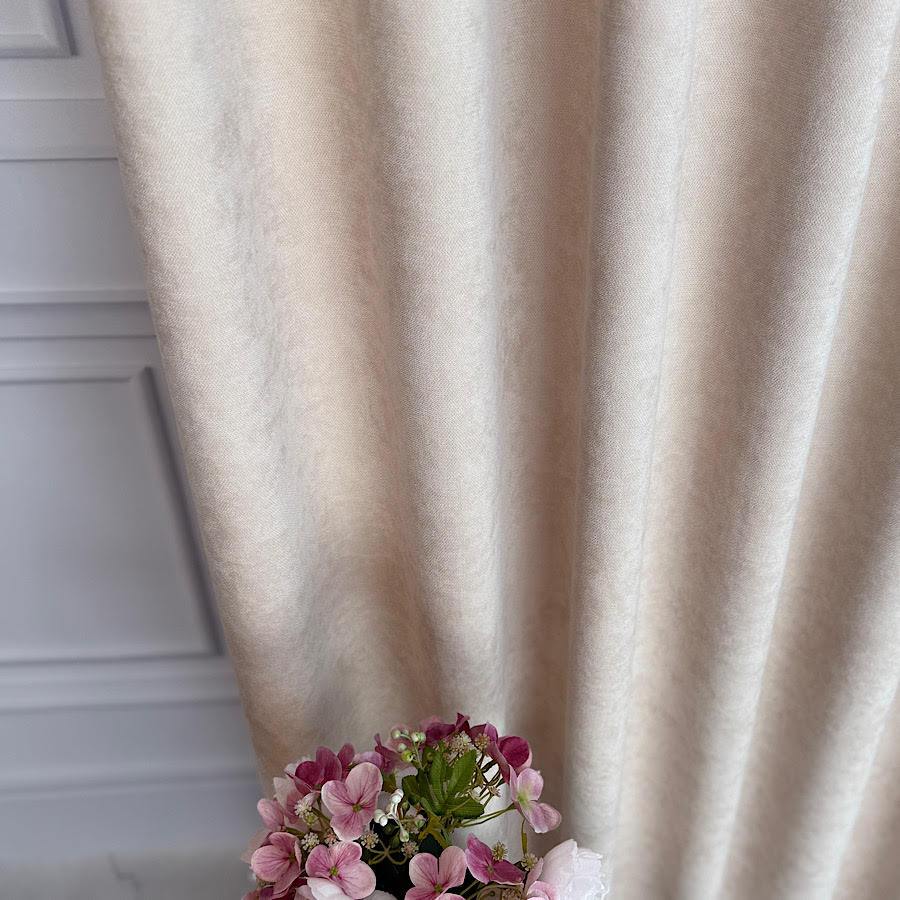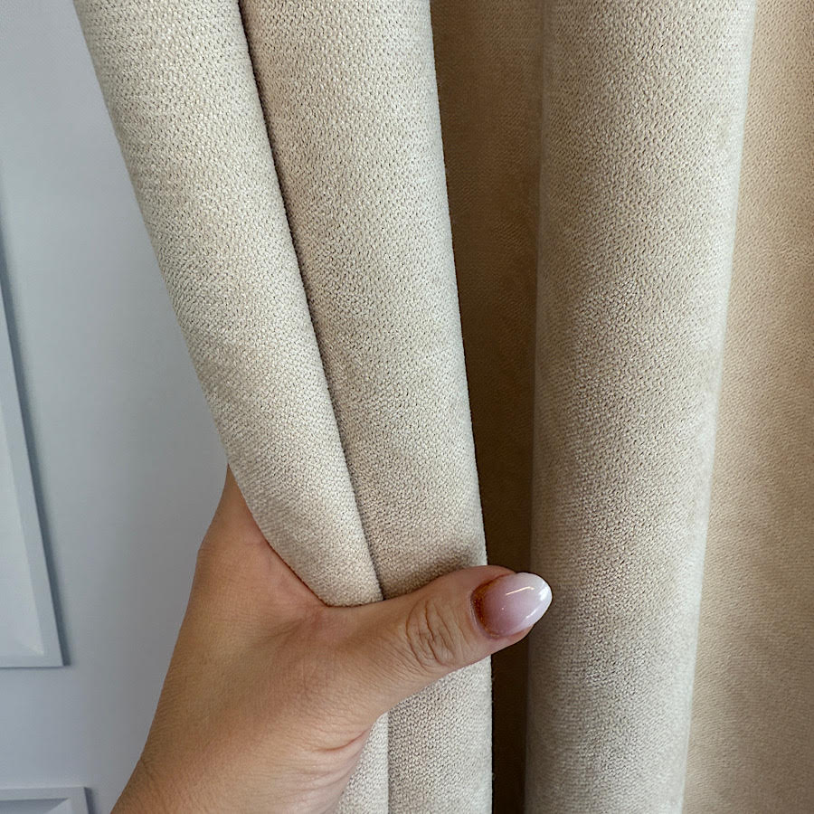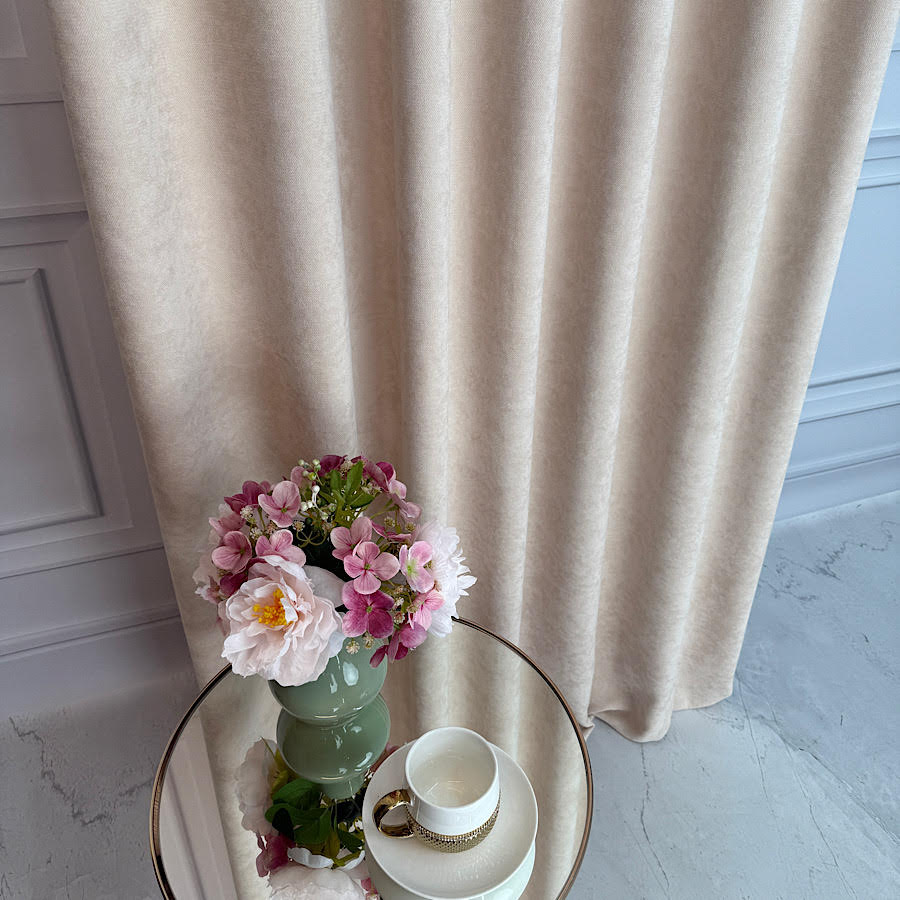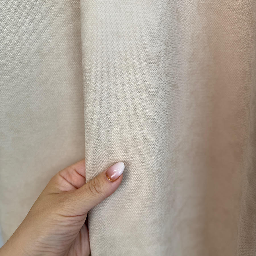• Szenilowa o aksamitnej strukturze – miękka faktura tkaniny sprawia, że materiał prezentuje się wyjątkowo elegancko, a zasłony pięknie się układają i delikatnie odbijają światło.
