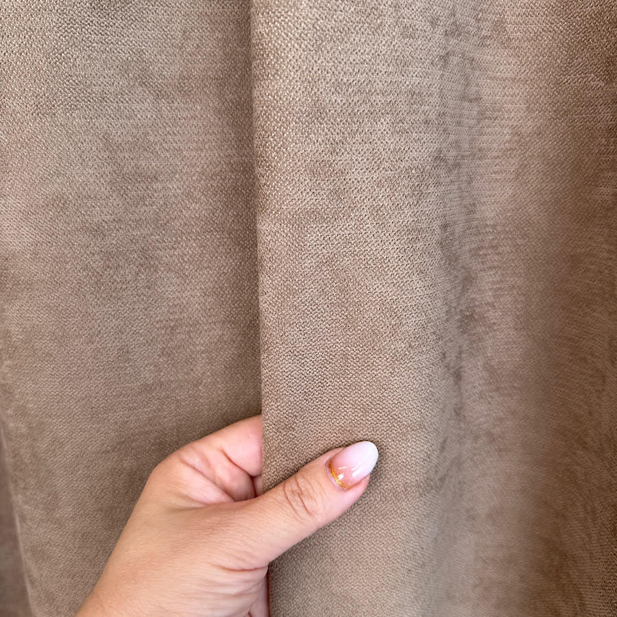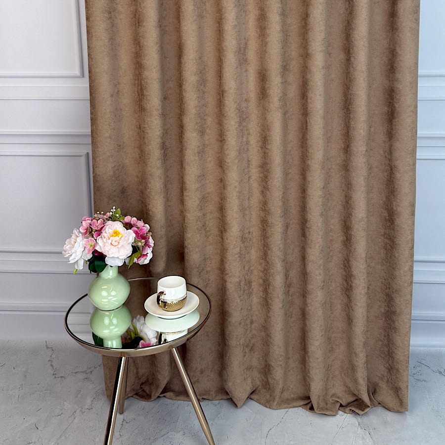 Tkanina dekoracyjna ROYAL w kolorze BRĄZU to propozycja dla odważnych aranżacji, w których liczy się elegancja i nowoczesny styl. Materiał w  wyglądzie przypominający welur to materiał, który nigdy nie wychodzi z mody – dodaje wnętrzu prestiżu i wyjątkowego charakteru. Dzięki wysokości 285 cm doskonale nadaje się do szycia zasłon, kotar oraz innych dodatków tekstylnych, które staną się centralnym punktem aranżacji.