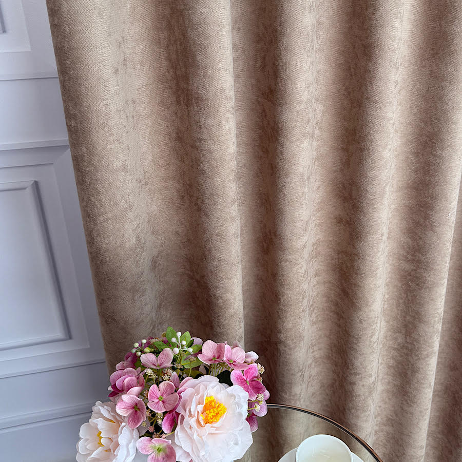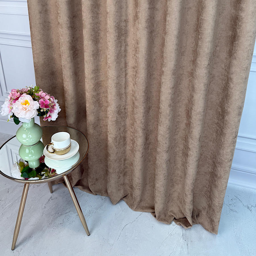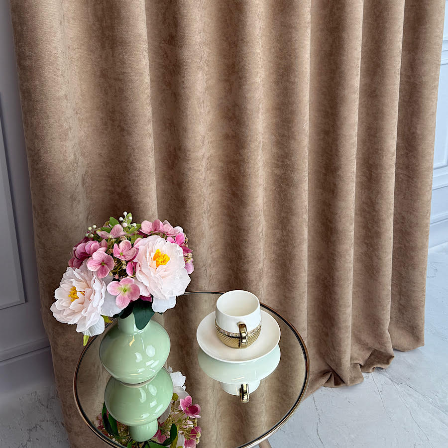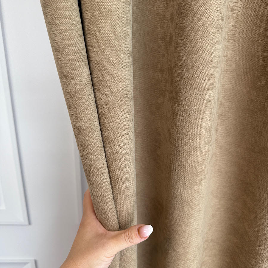 • Szenilowa o aksamitnej strukturze – miękka faktura tkaniny sprawia, że materiał prezentuje się wyjątkowo elegancko, a zasłony pięknie się układają i delikatnie odbijają światło.