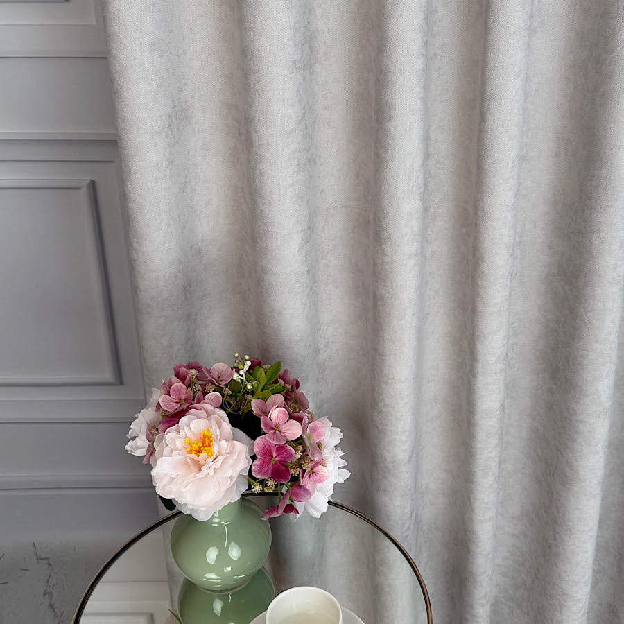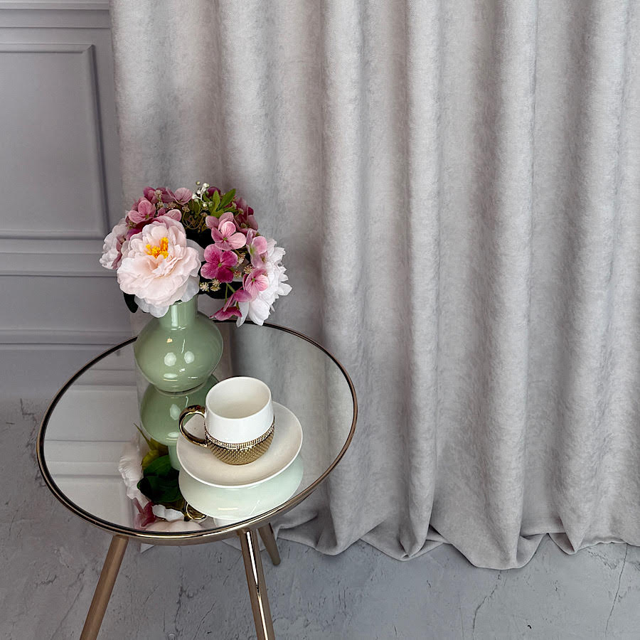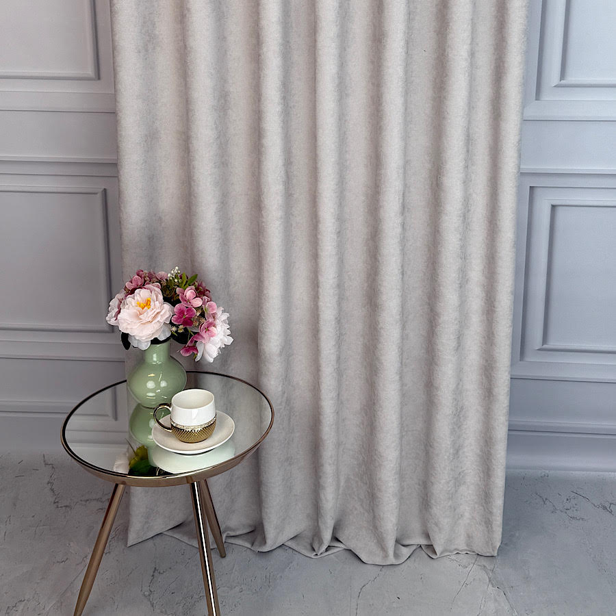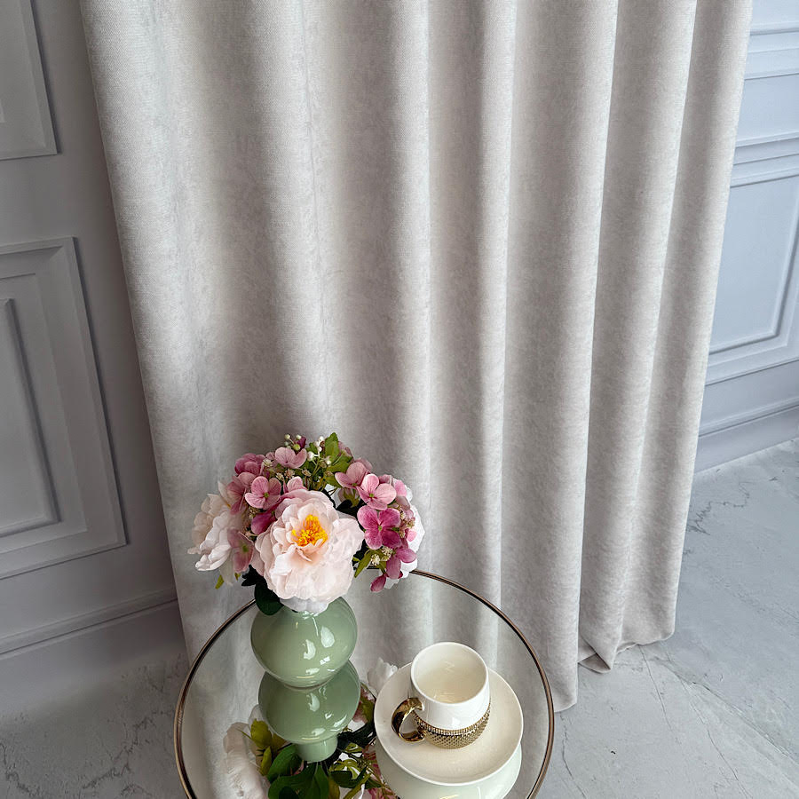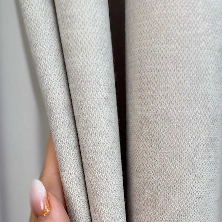 • Szenilowa o aksamitnej strukturze – miękka faktura tkaniny sprawia, że materiał prezentuje się wyjątkowo elegancko, a zasłony pięknie się układają i delikatnie odbijają światło.