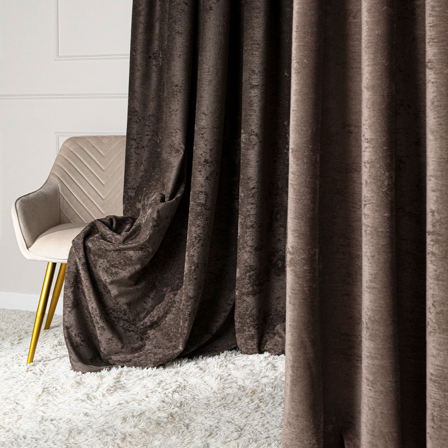 Tkanina SOFT to rozwiązanie dla osób, które chcą łączyć elegancję z praktycznością. Ciemno chłodno brązowy odcień, miękka szenilowa struktura i zaciemniające właściwości sprawiają, że materiał ten będzie doskonałą bazą do szycia zasłon i dekoracji na lata.