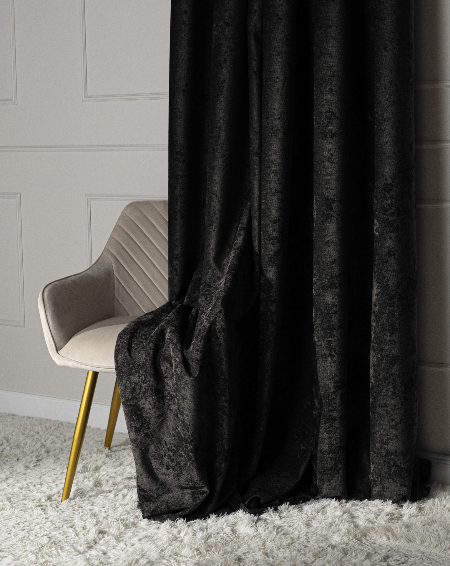 Tkanina SOFT to rozwiązanie dla osób, które chcą łączyć elegancję z praktycznością. Czarny odcień, miękka szenilowa struktura i zaciemniające właściwości sprawiają, że materiał ten będzie doskonałą bazą do szycia zasłon i dekoracji na lata.