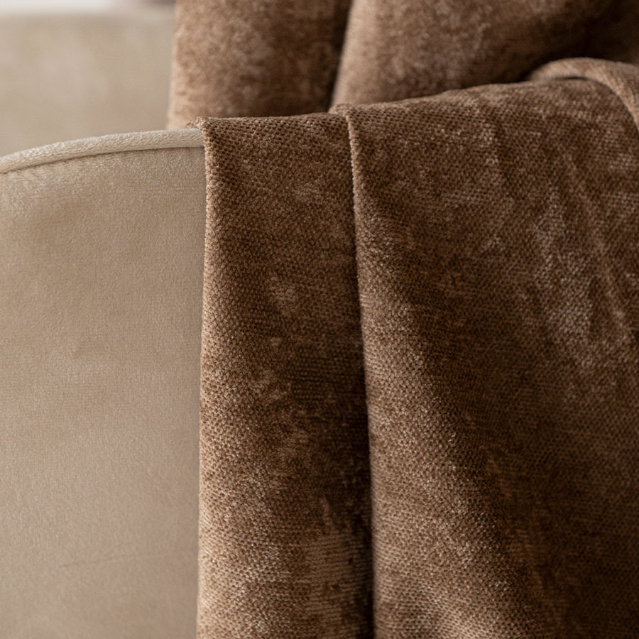 Tkanina SOFT to rozwiązanie dla osób, które chcą łączyć elegancję z praktycznością. Jasno brązowy odcień, miękka szenilowa struktura i zaciemniające właściwości sprawiają, że materiał ten będzie doskonałą bazą do szycia zasłon i dekoracji na lata.