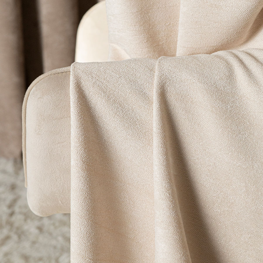 Tkanina SOFT to rozwiązanie dla osób, które chcą łączyć elegancję z praktycznością. Kremowy odcień, miękka welurowa struktura i zaciemniające właściwości sprawiają, że materiał ten będzie doskonałą bazą do szycia zasłon i dekoracji na lata.