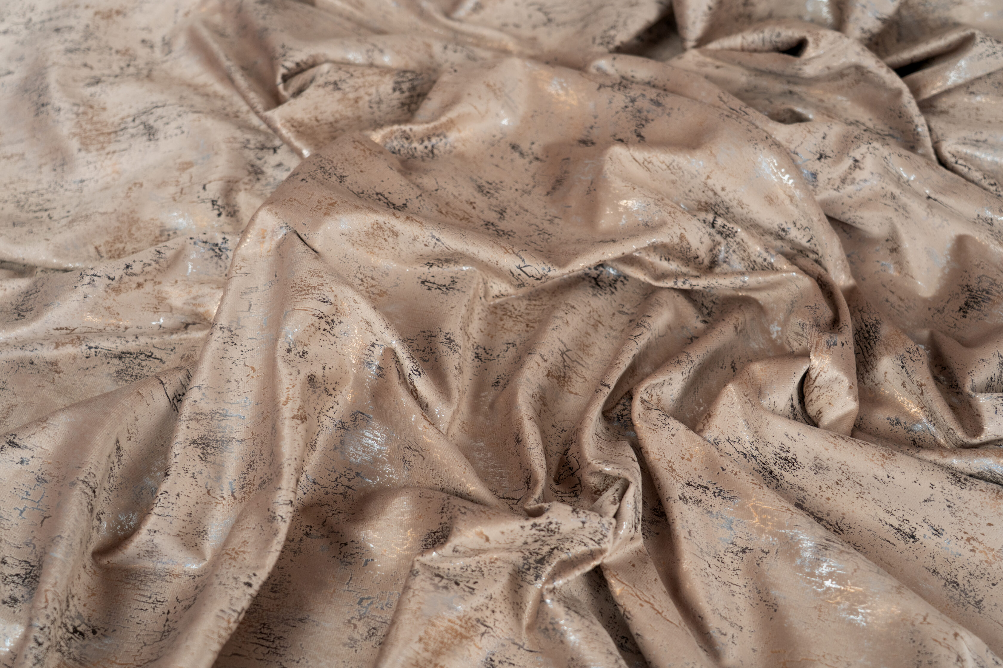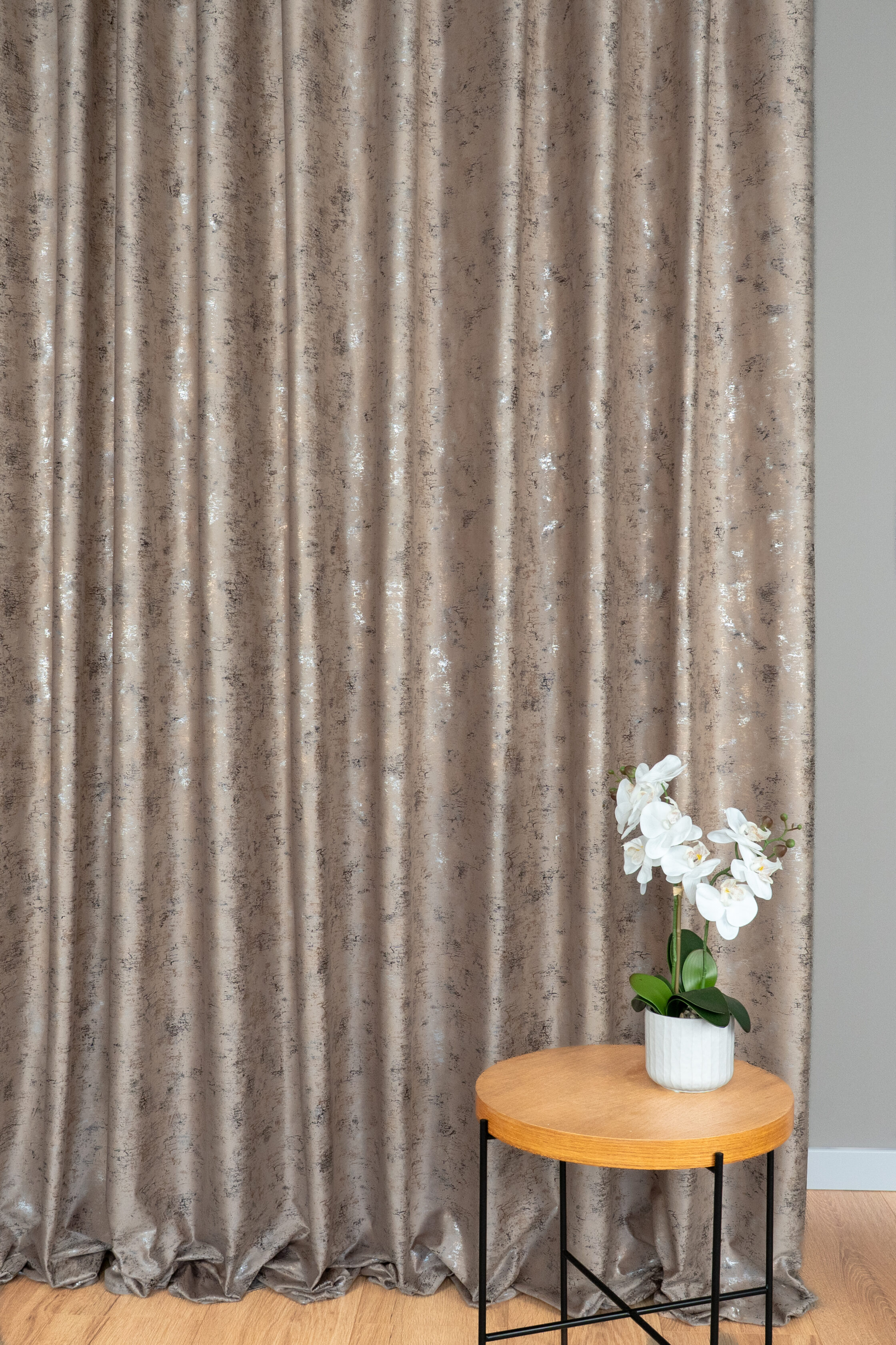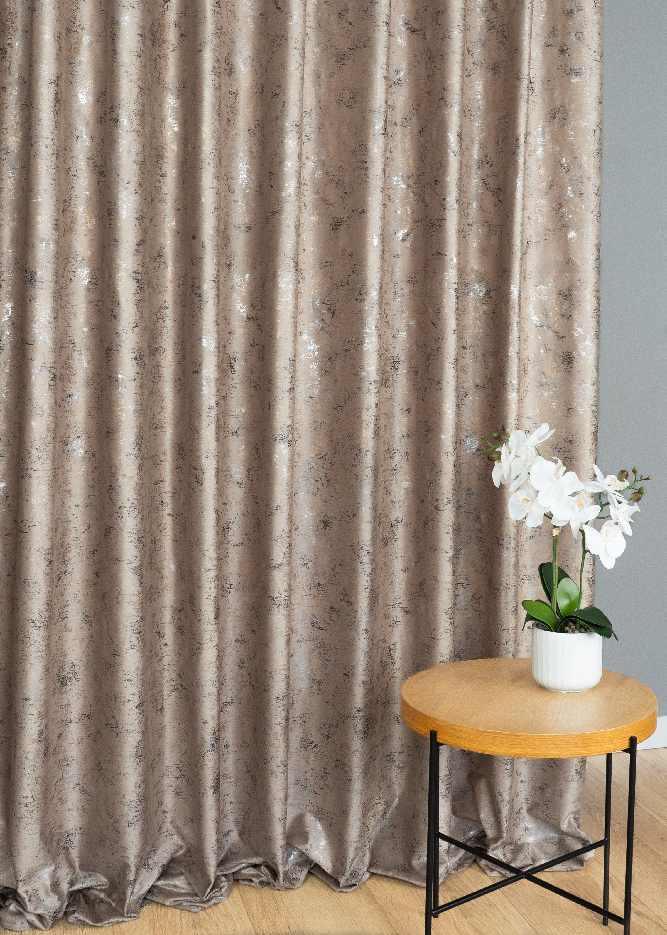 Spark zasłona velvet beżowa z złoto-srebrnym nadrukiem wys.280cm
