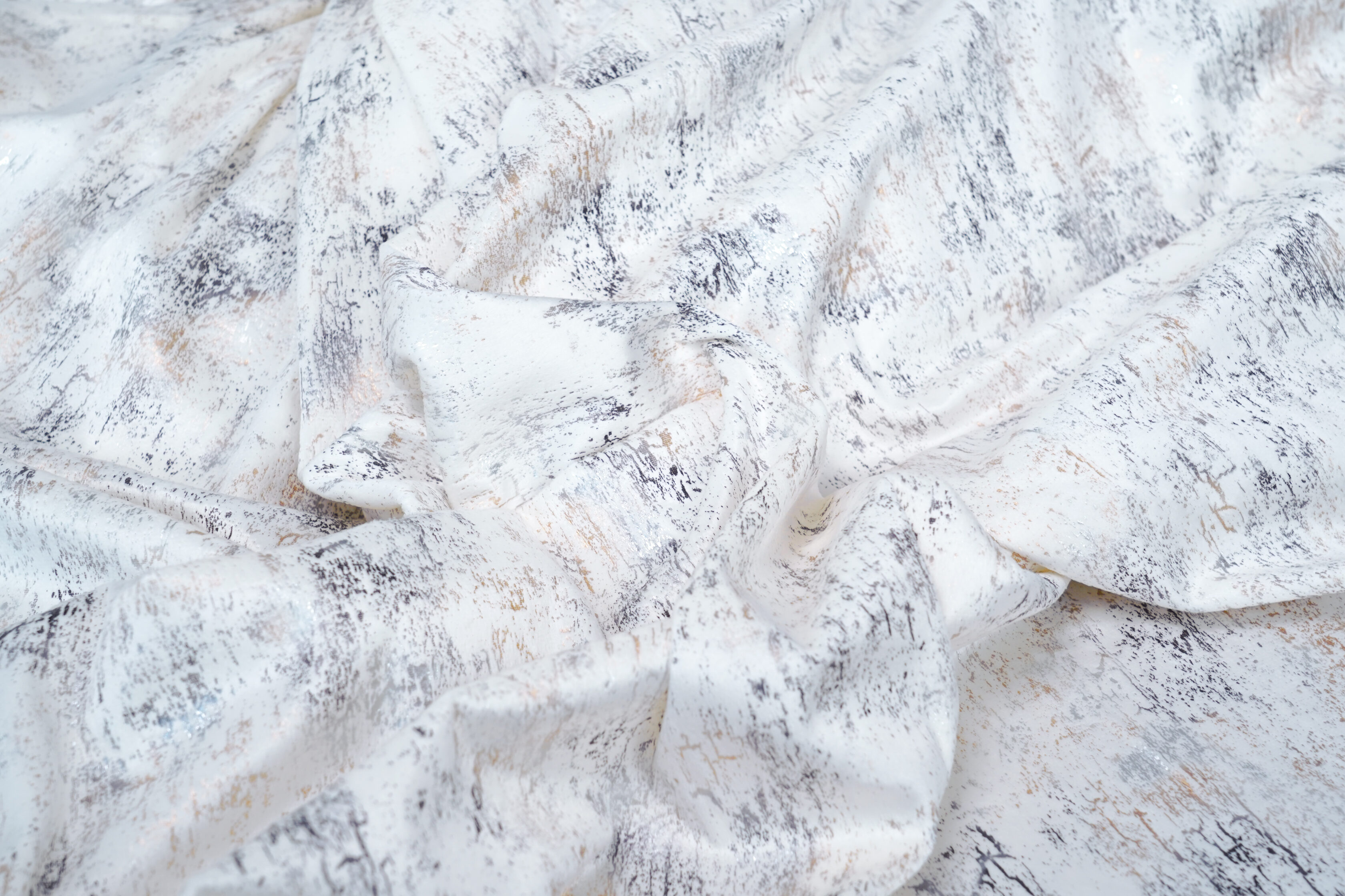 Spark zasłona velvet biały z złoto-srebrnym nadrukiem wys.280cm