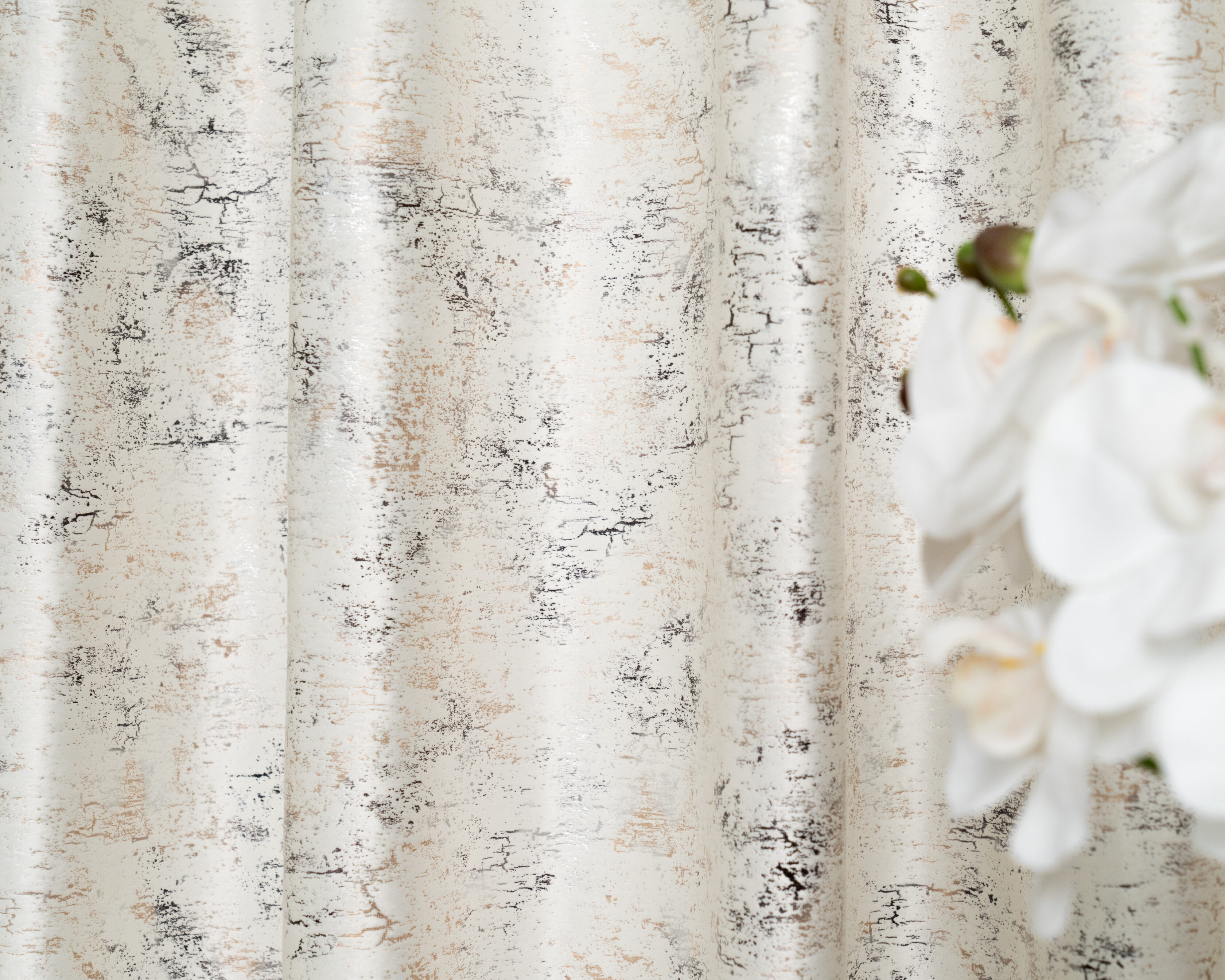 Velvet spark Tkanina Dekoracyjna o Wysokości 280cm w kolorze krem z dodatkiem srebra i złota