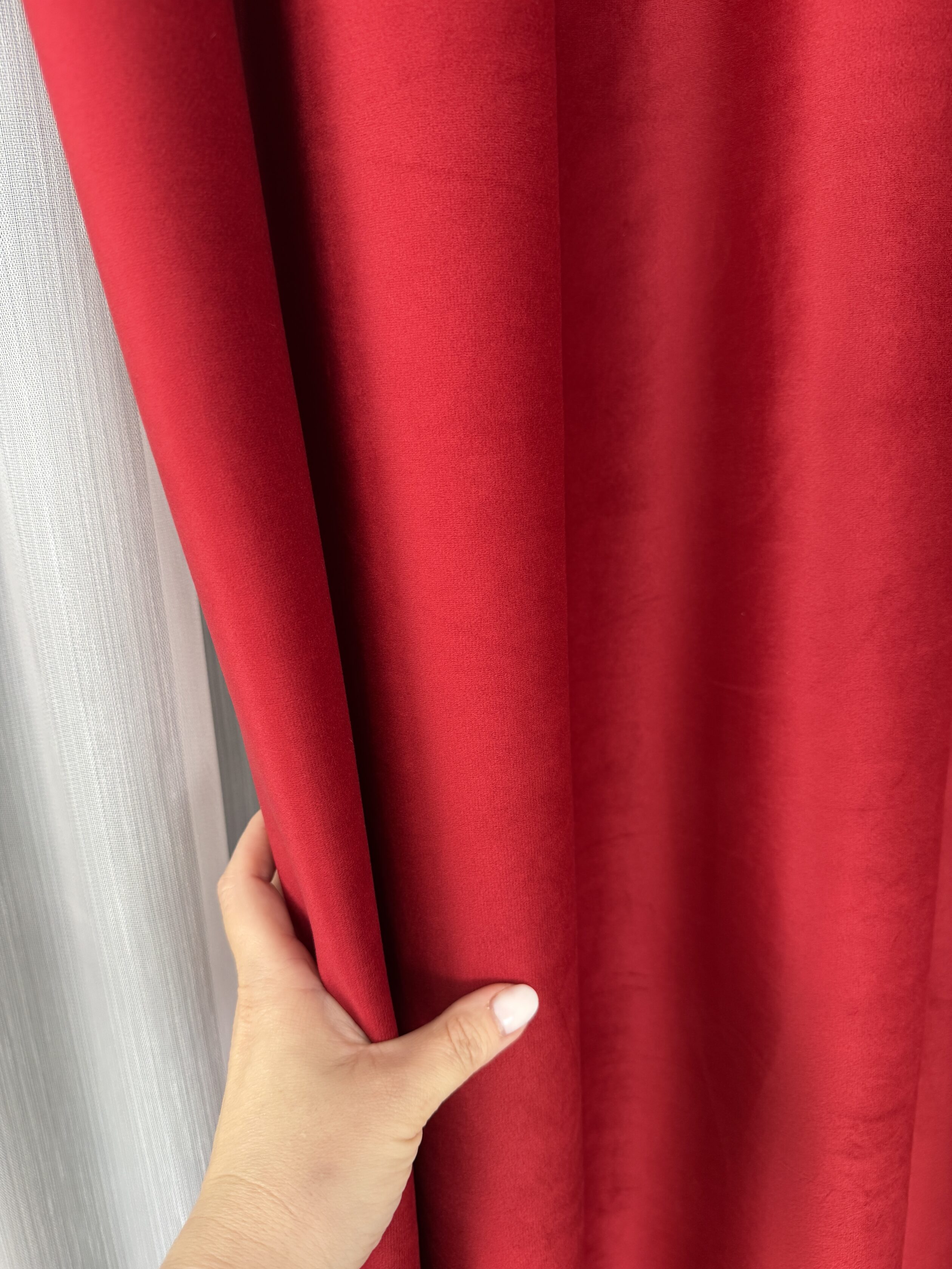 - Przyjemna w dotyku tkanina – miękka struktura sprawia, że zasłona wygląda elegancko i układa się naturalnie, tworząc efekt delikatnej falistości.