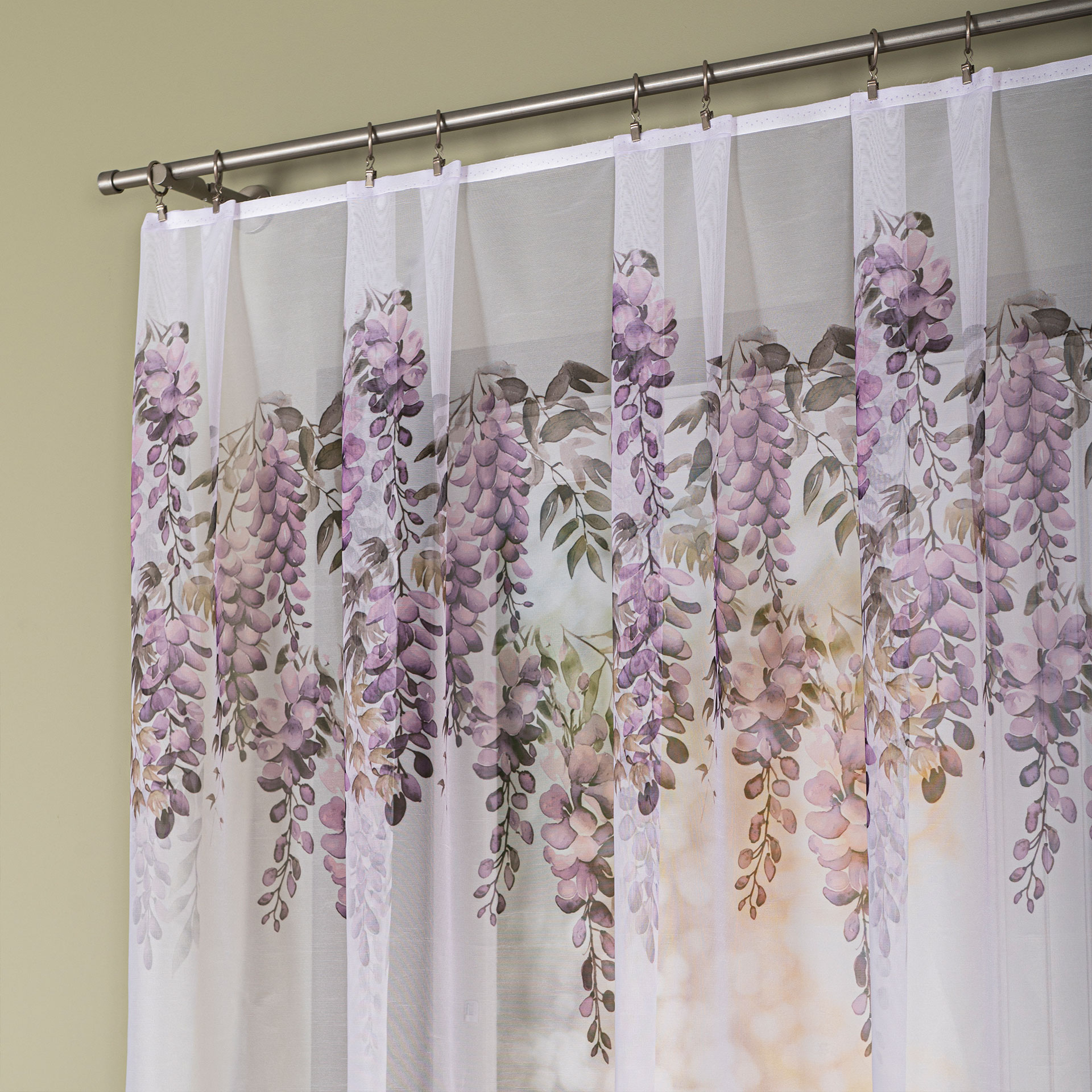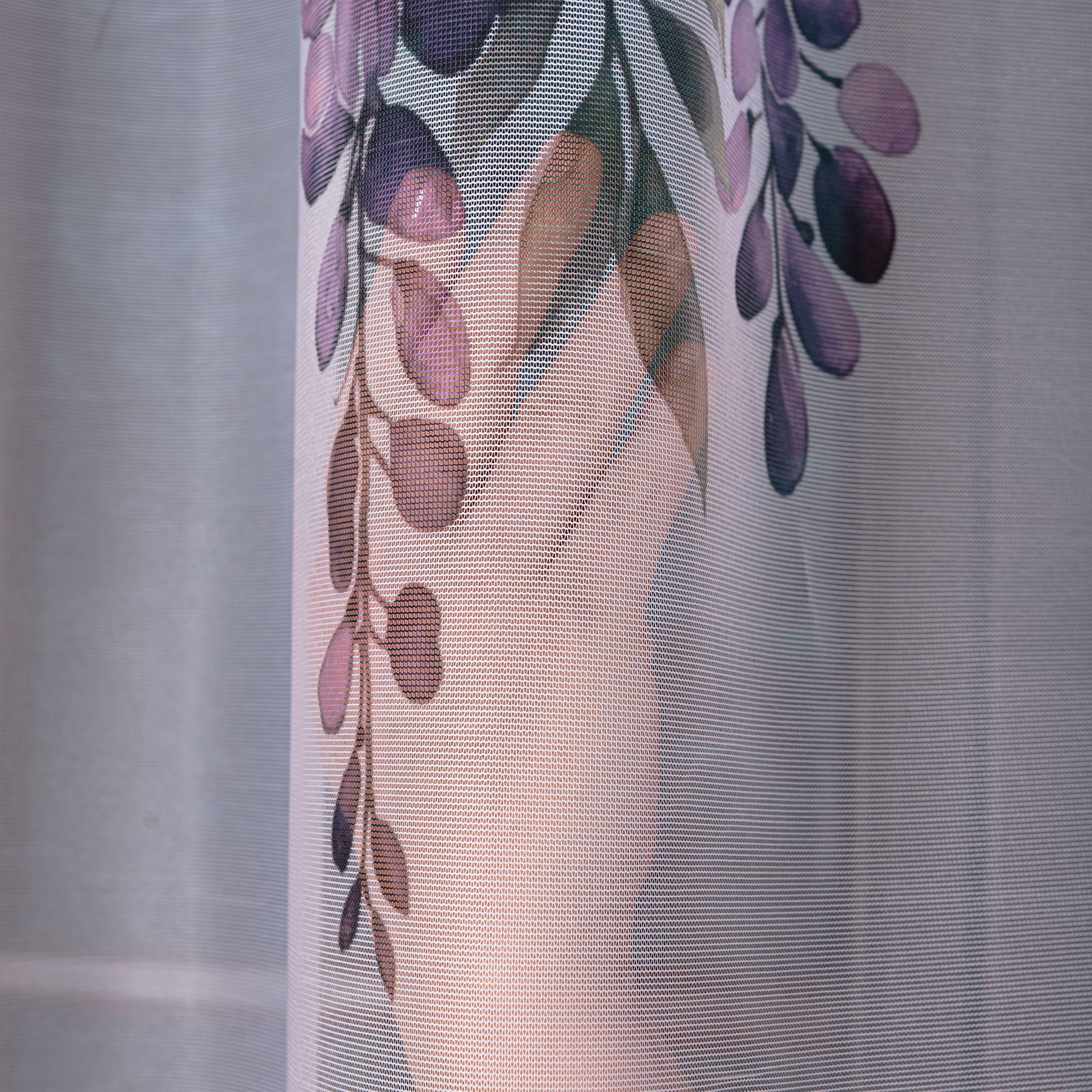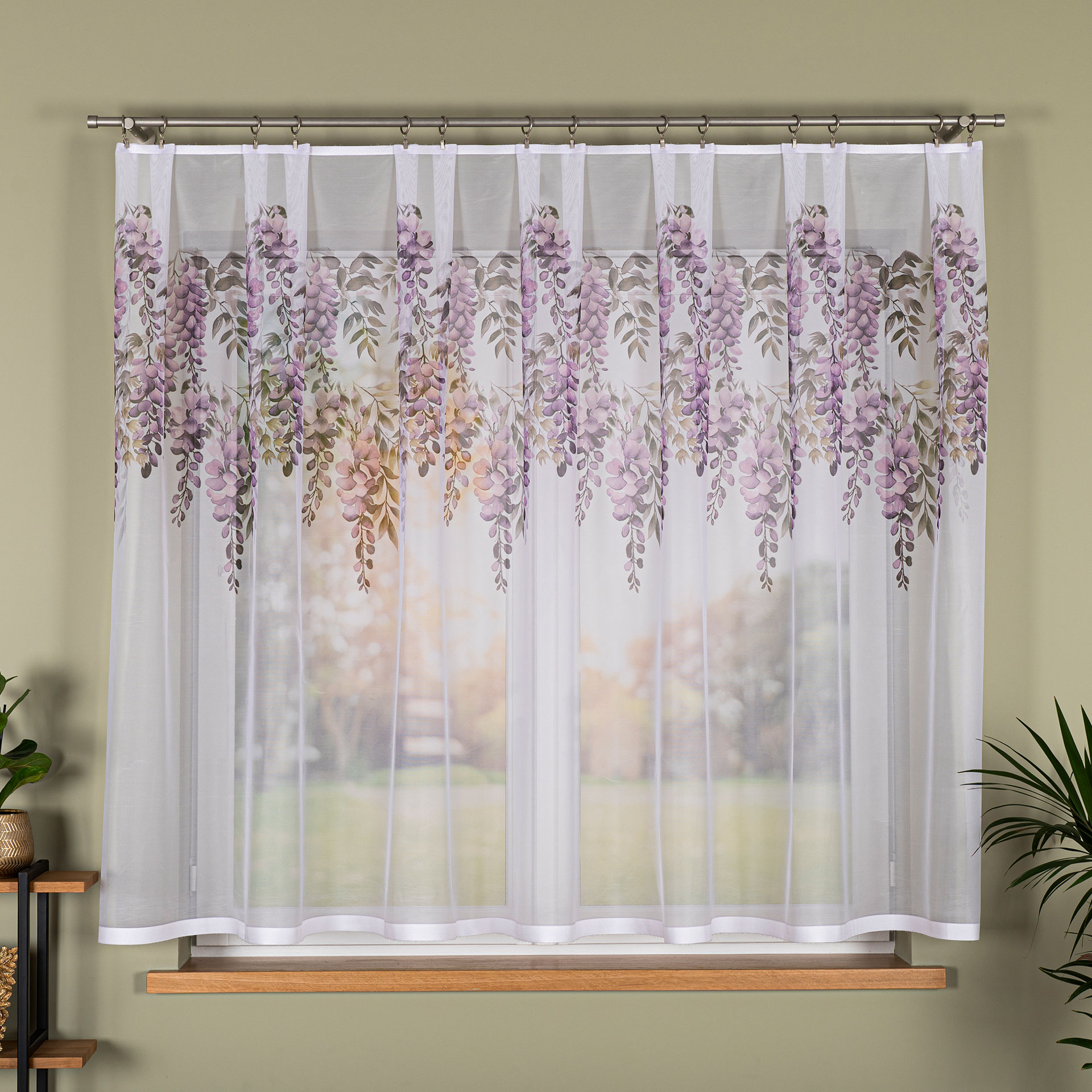 Wisteria firana żakardowa biała z fioletem wys.170cm