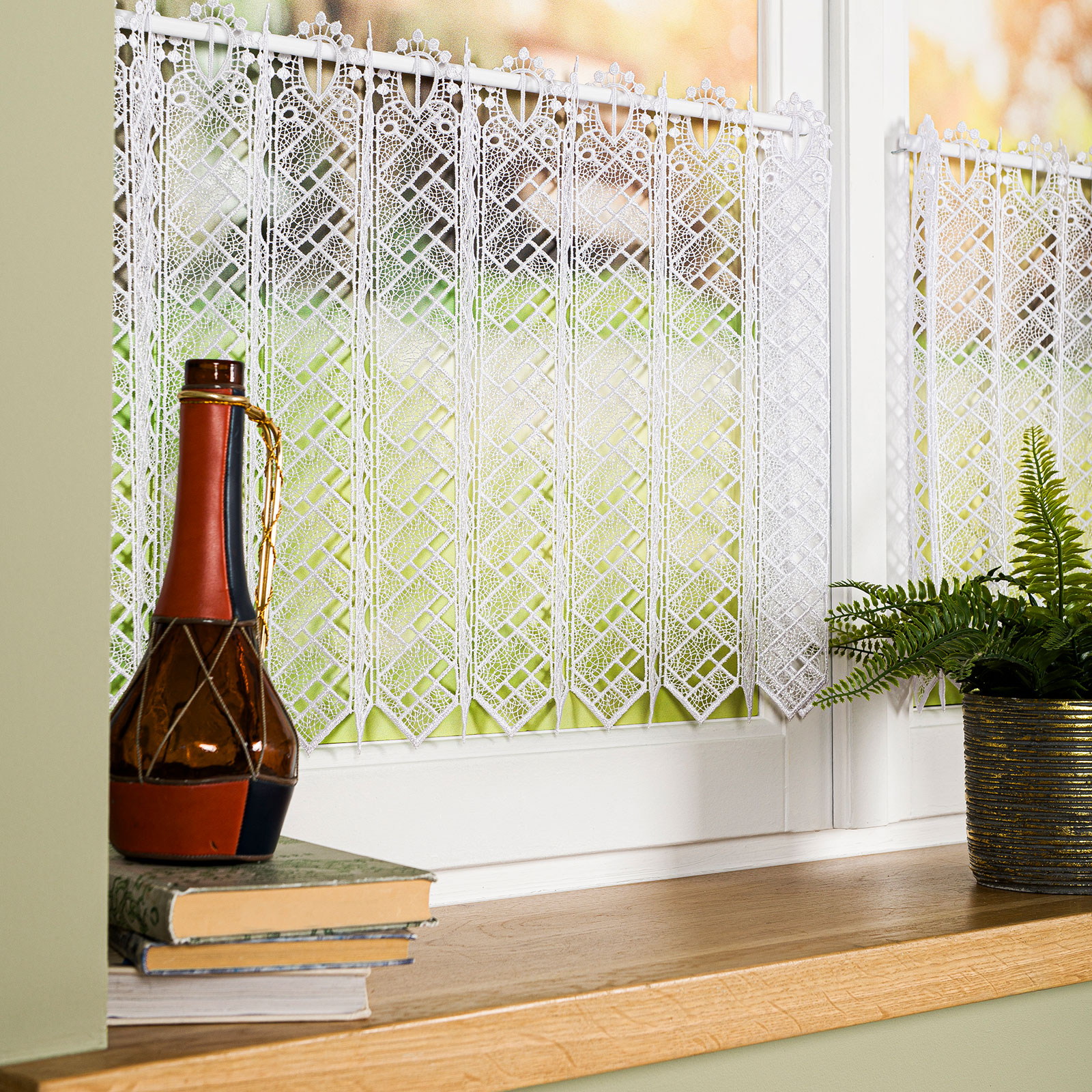 Zazdrostka ta,to urocza gipiura na wysokogatunkowej przędzy! Dzięki temu zazdrostka nie wymaga prasowania! Świetnie sprawdzi się w nowoczesnych jak i klasycznych wnętrzach!